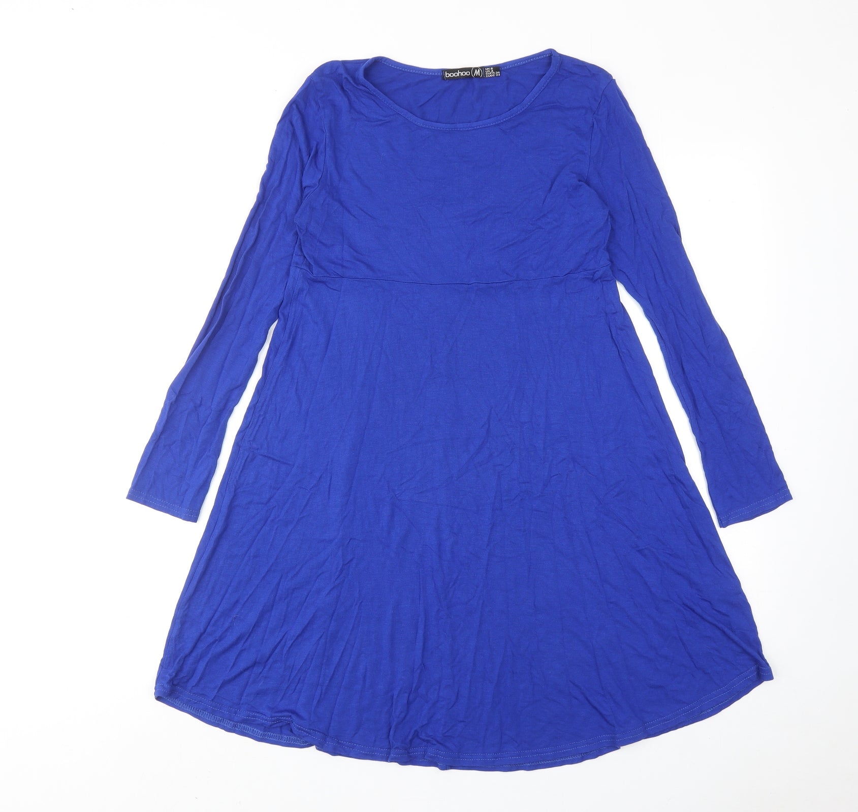 Boohoo Womens Blue Viscose Jumper Dress Size 8 Round Neck Pullover