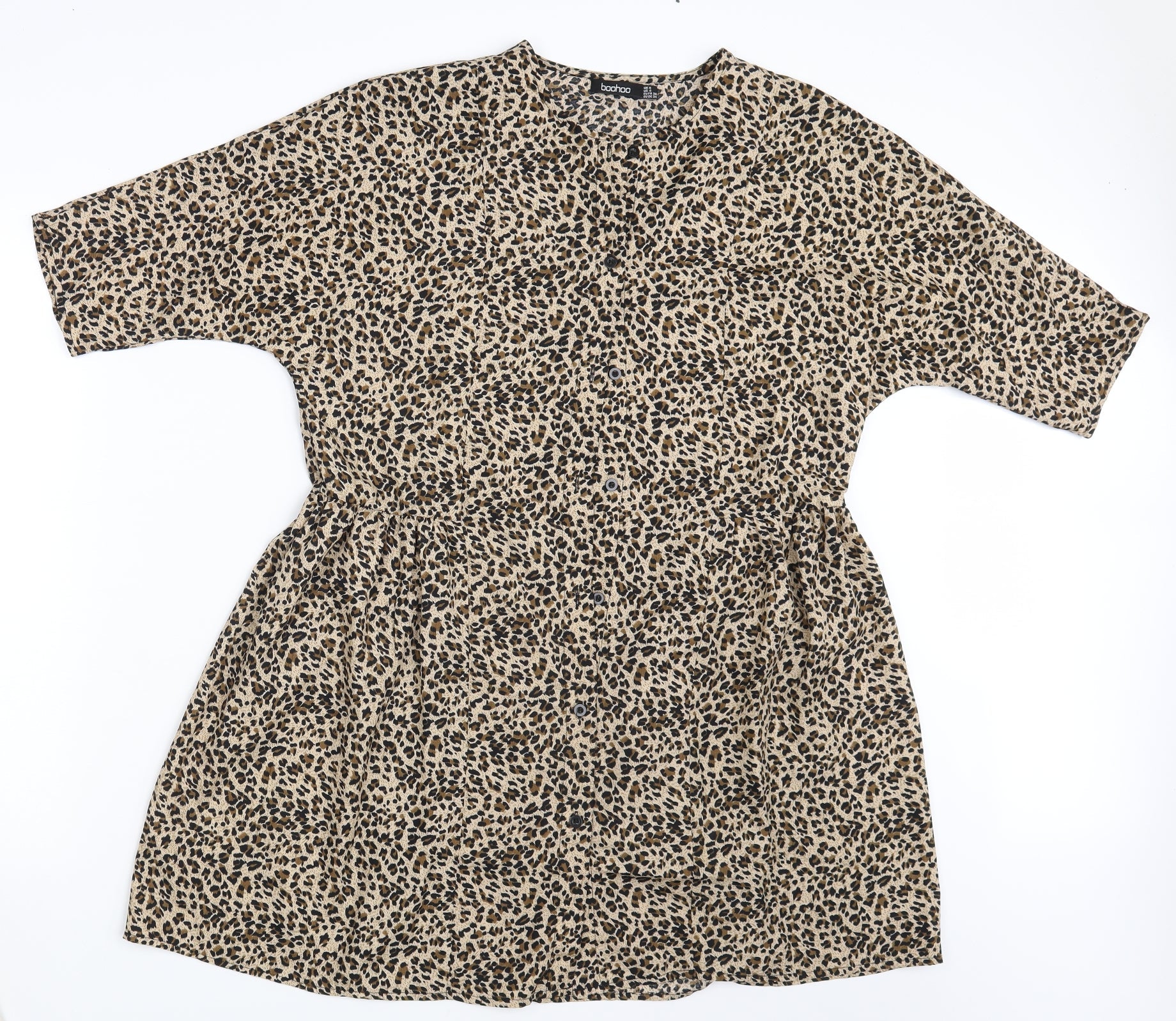 Boohoo Womens Brown Animal Print Basic Button-Up Size 8