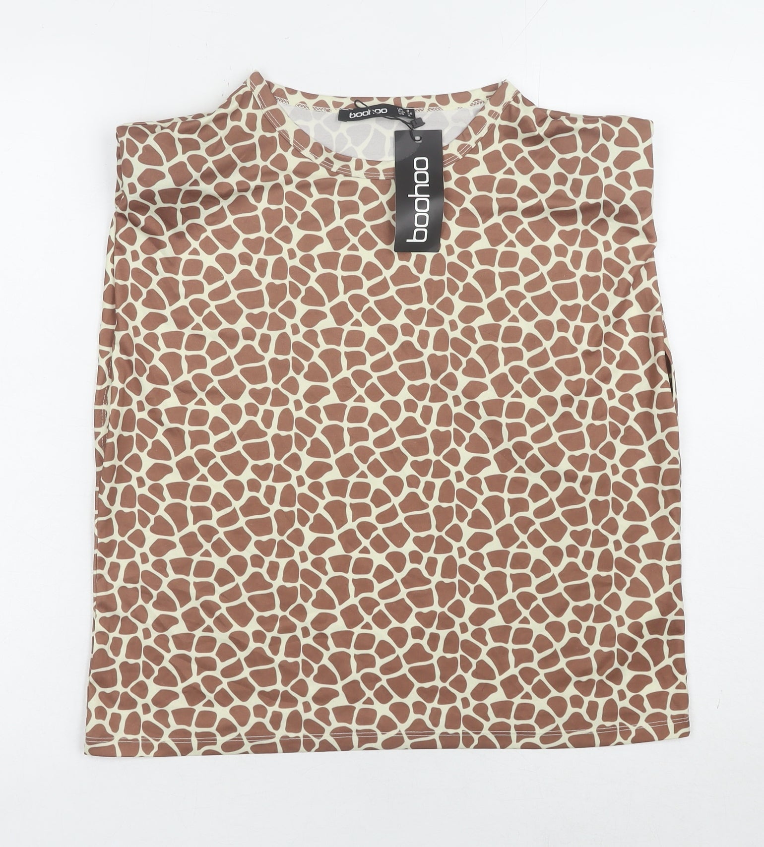 Boohoo Women's Brown Animal Print Sleeveless Top Size 8