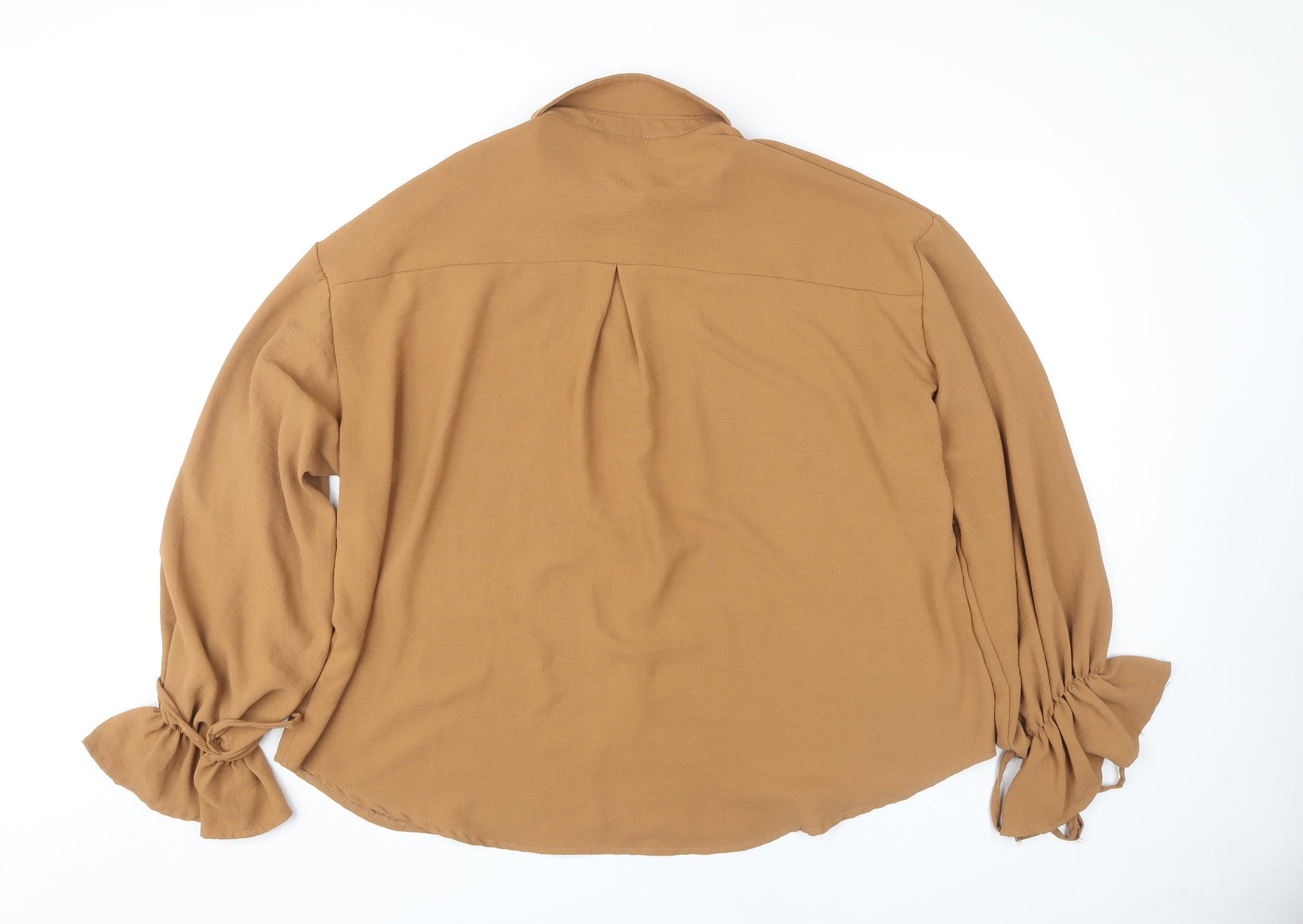 Boohoo Women's Brown Button-Up Blouse Size 16