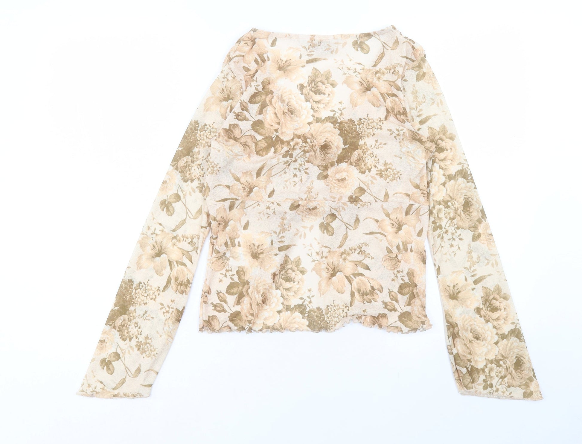 Boohoo Womens Brown Floral Polyester Basic Blouse Size S V-Neck