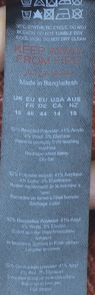 - Material Breakdown: 97% Acrylic 3% Elastane
