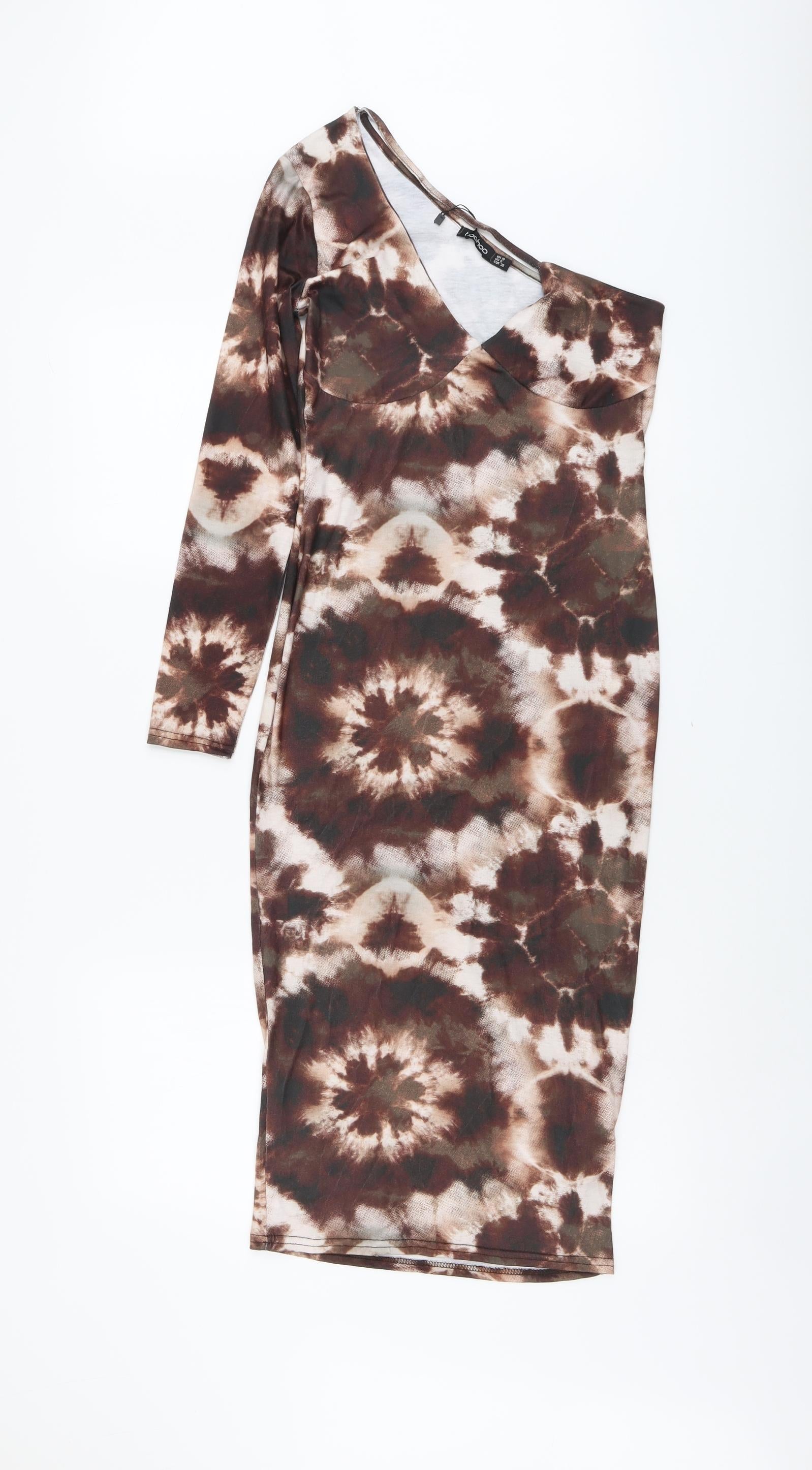 Boohoo Womens Brown Geometric Polyester Bodycon Size 10 One Shoulder Pullover - Tie Dye