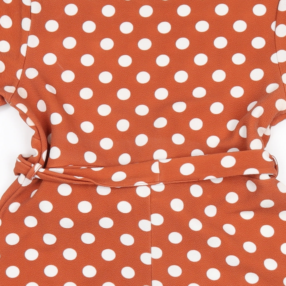 Boohoo Womens Brown Polka Dot Polyester A-Line Size 12 Round Neck Pullover