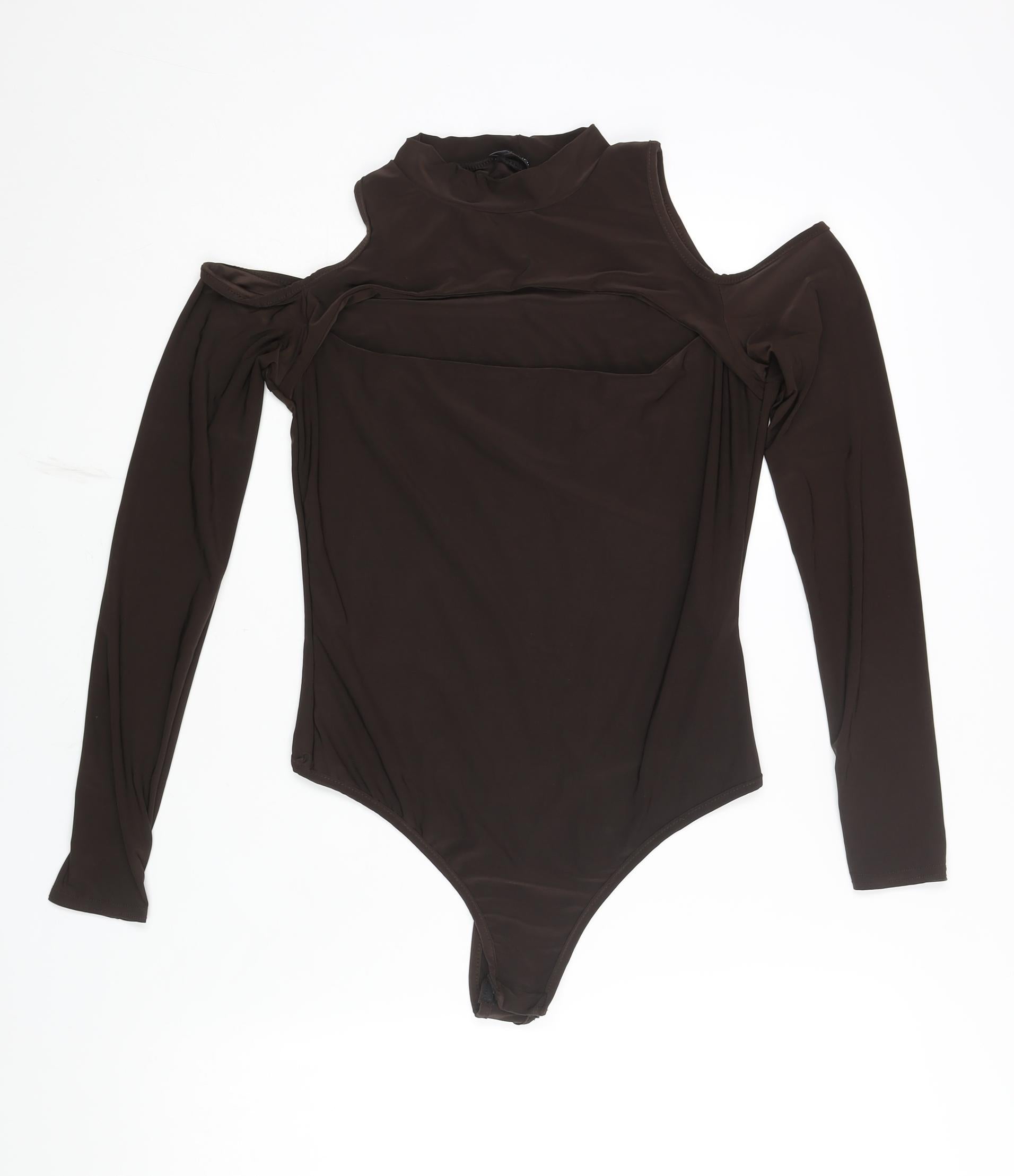 Boohoo Womens Brown Polyester Playsuit One-Piece Size 12 Snap - Cold Shoulder Cut Out Detail