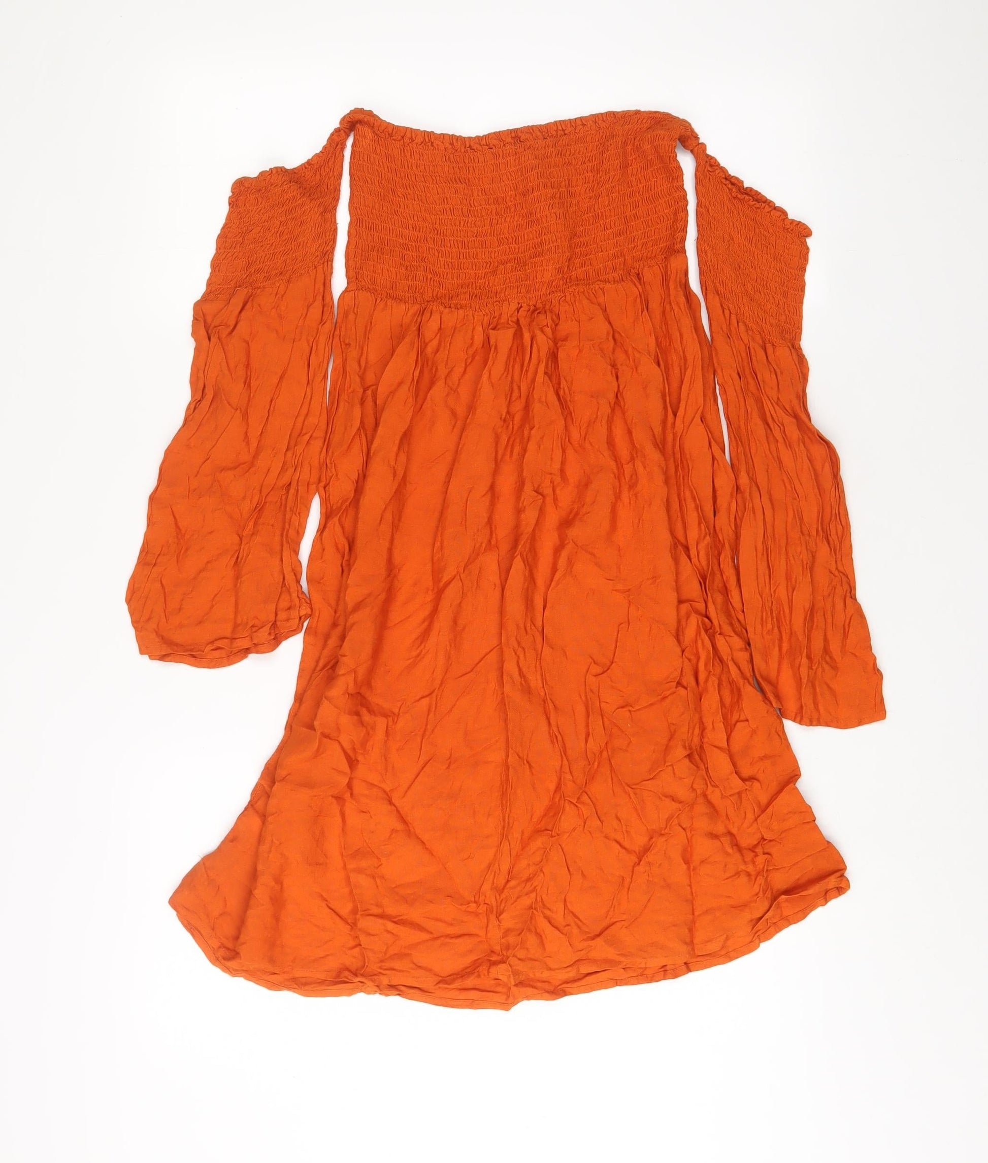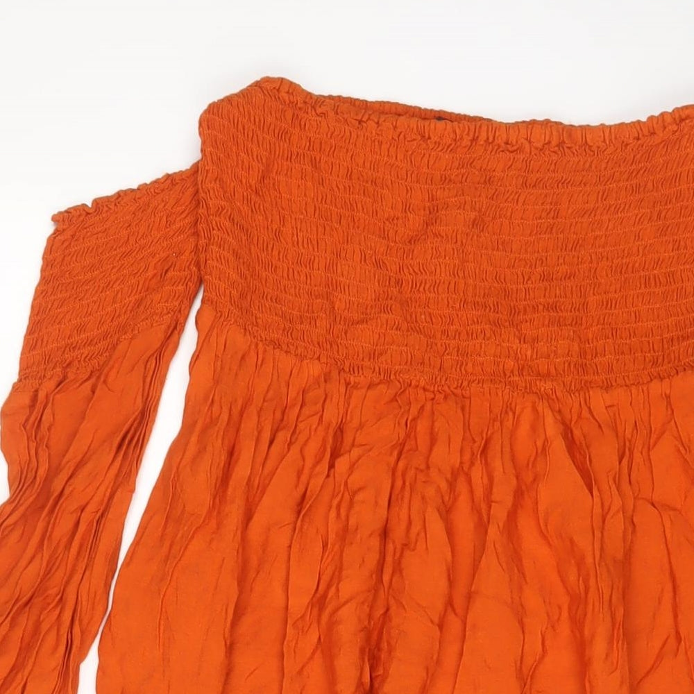 Boohoo Womens Brown Viscose A-Line Size 10 Off the Shoulder Pullover