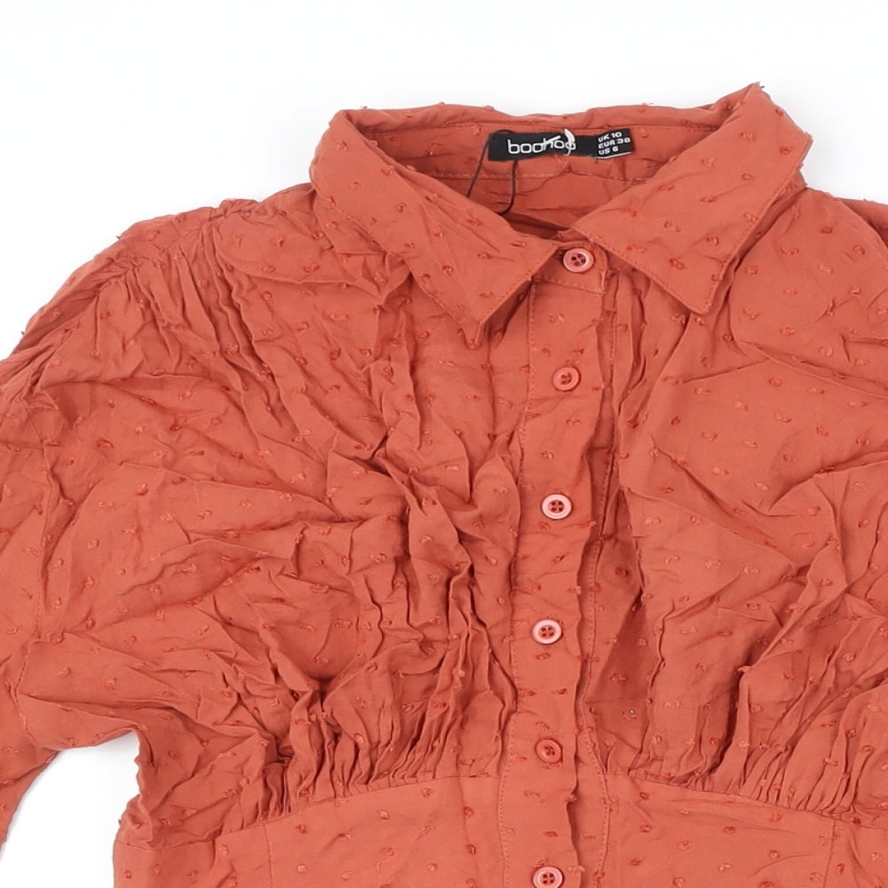 Boohoo Womens Brown Viscose Shirt Dress Size 10 Collared Button