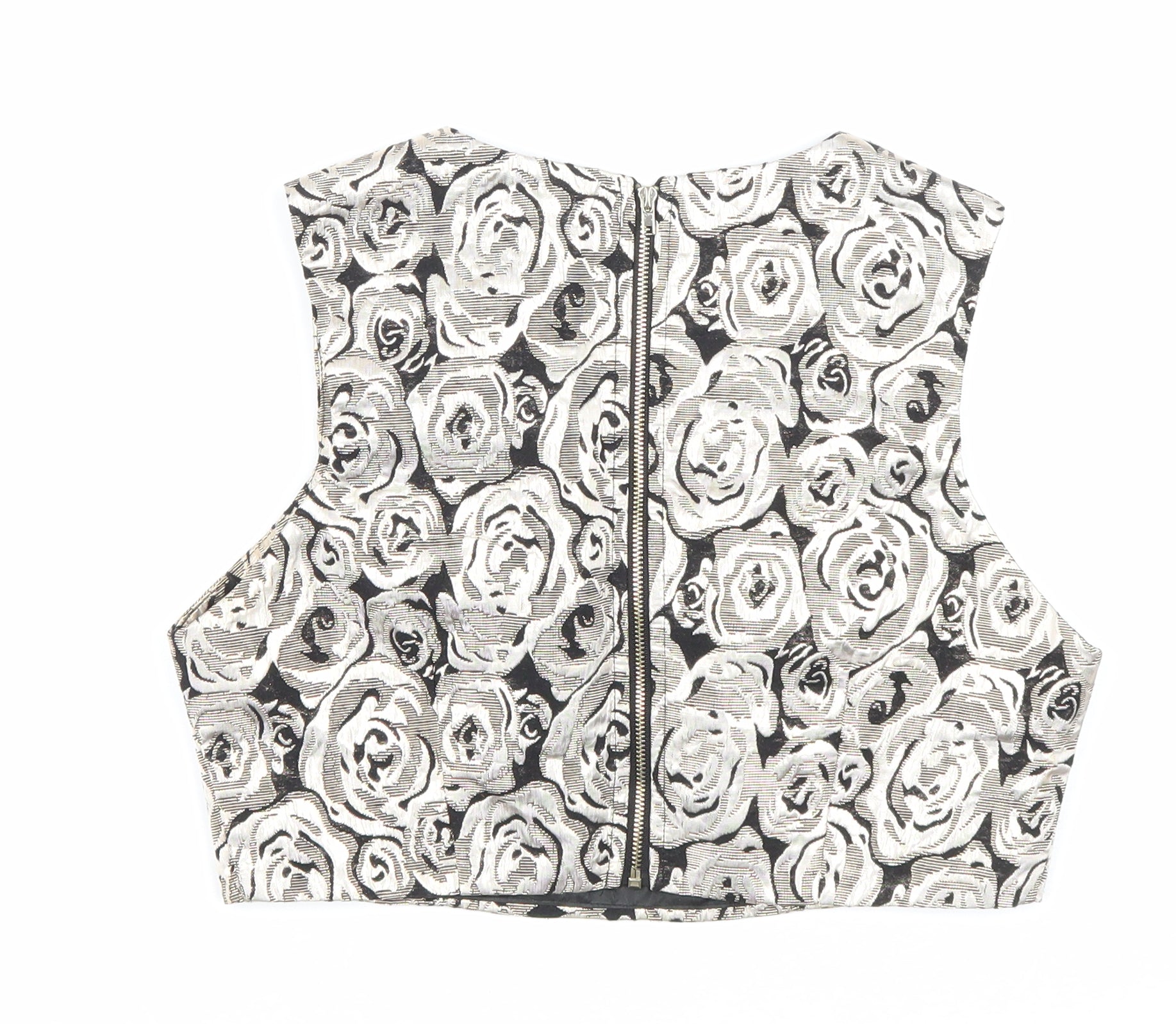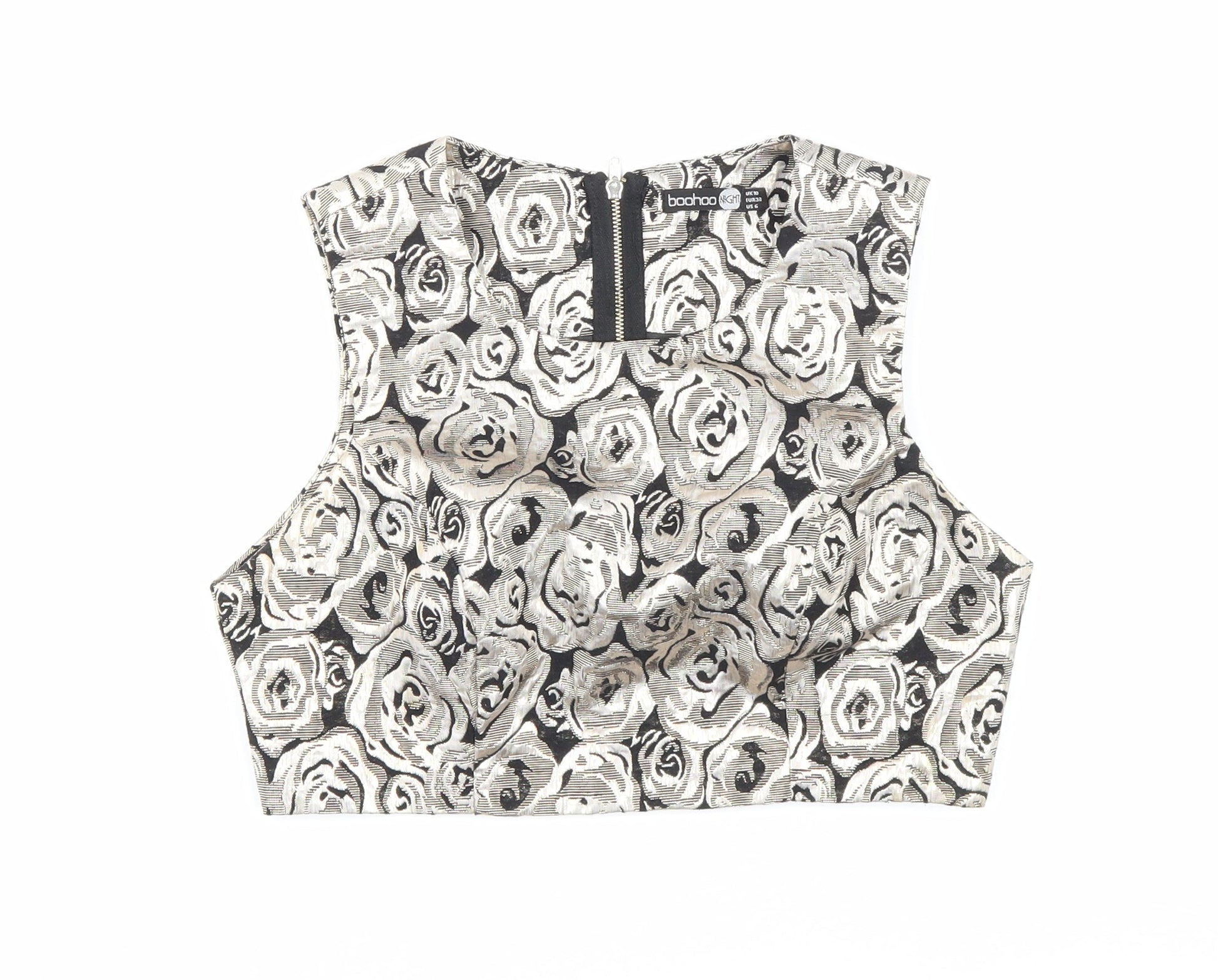 Boohoo Womens Gold Floral Polyester Cropped Blouse Size 10 Scoop Neck
