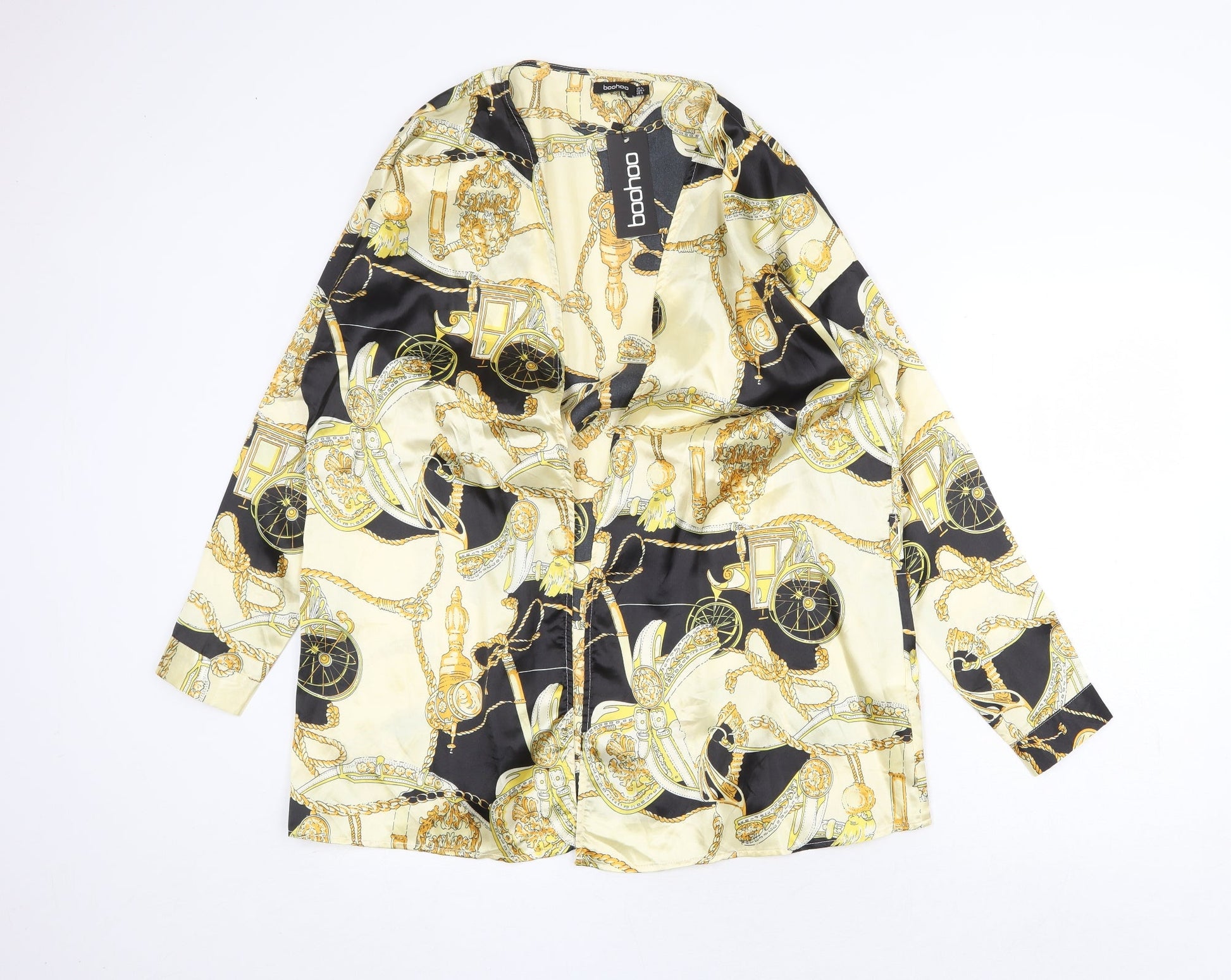 Boohoo Womens Gold Geometric Polyester Basic Blouse Size 12 V-Neck