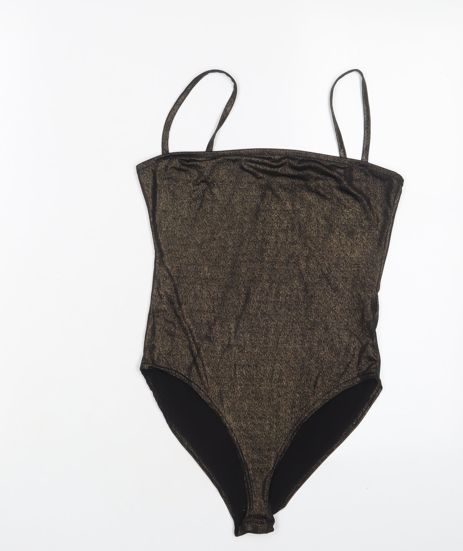Boohoo Womens Gold Polyester Bodysuit One-Piece Size 8 Pullover