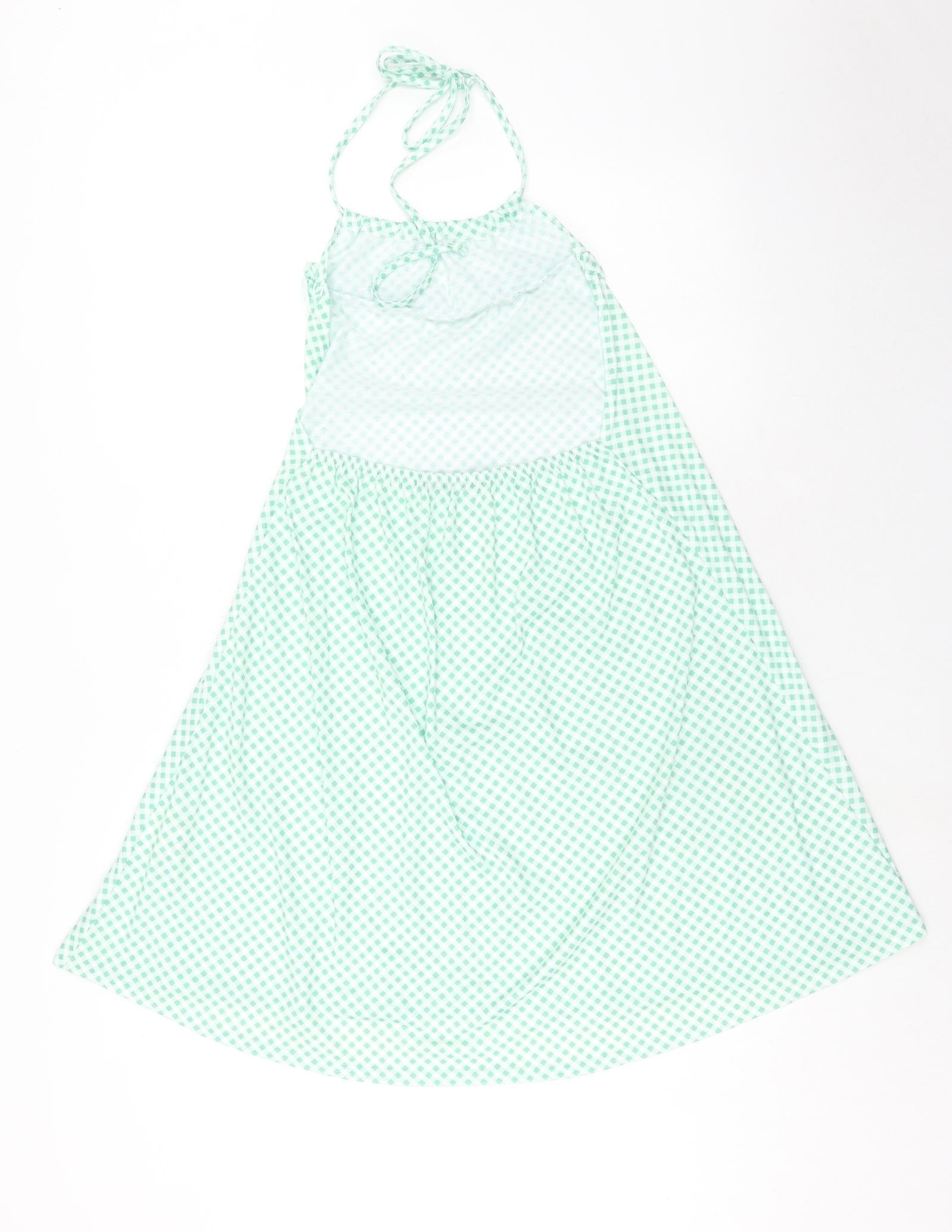 Boohoo Womens Green Geometric Polyester A-Line Size 10 Halter Tie - Open Back