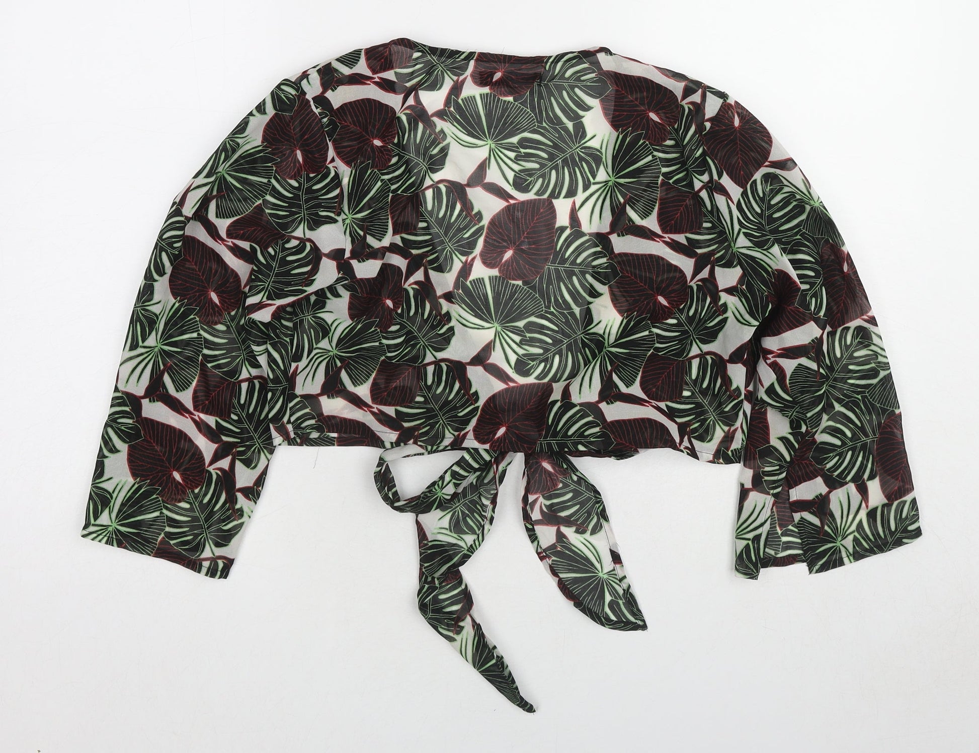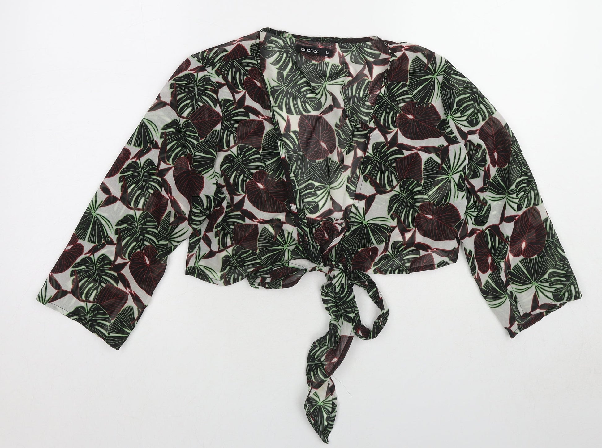 Boohoo Womens Green Geometric Polyester Basic Blouse Size M V-Neck - Leaf Print