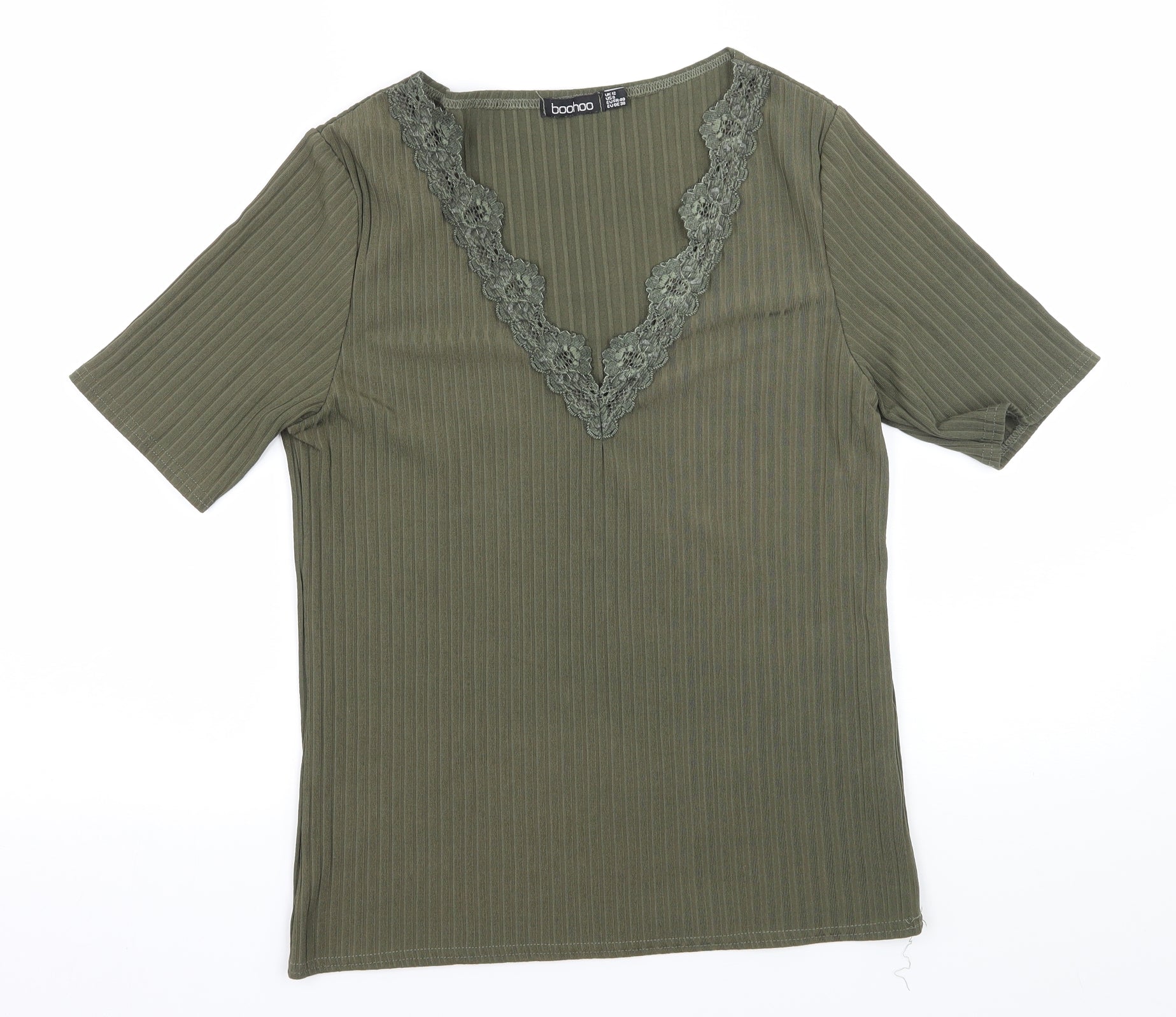 Boohoo Womens Green Jersey Basic T-Shirt Size 12