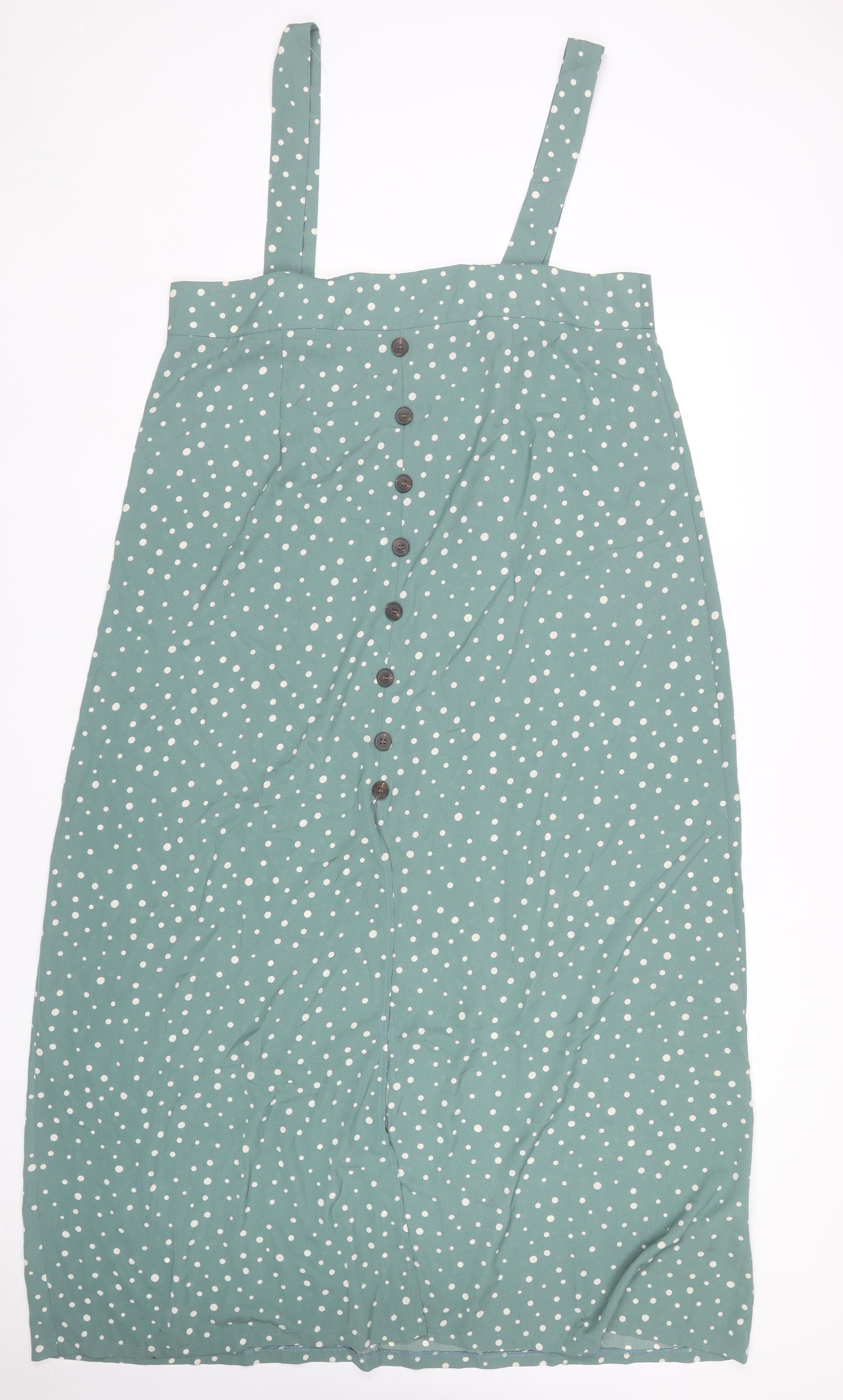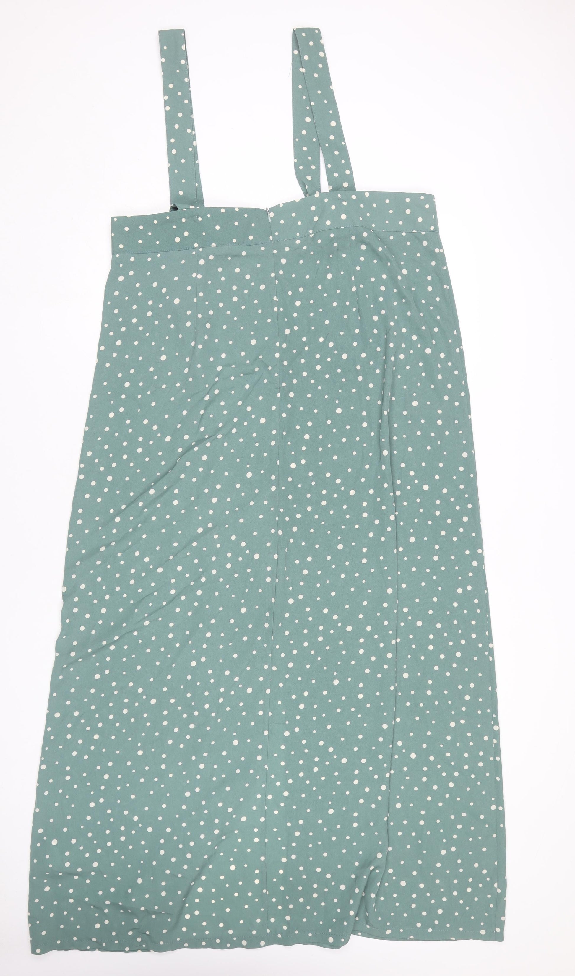 Boohoo Womens Green Polka Dot Midi Pinafore Dress Size 20