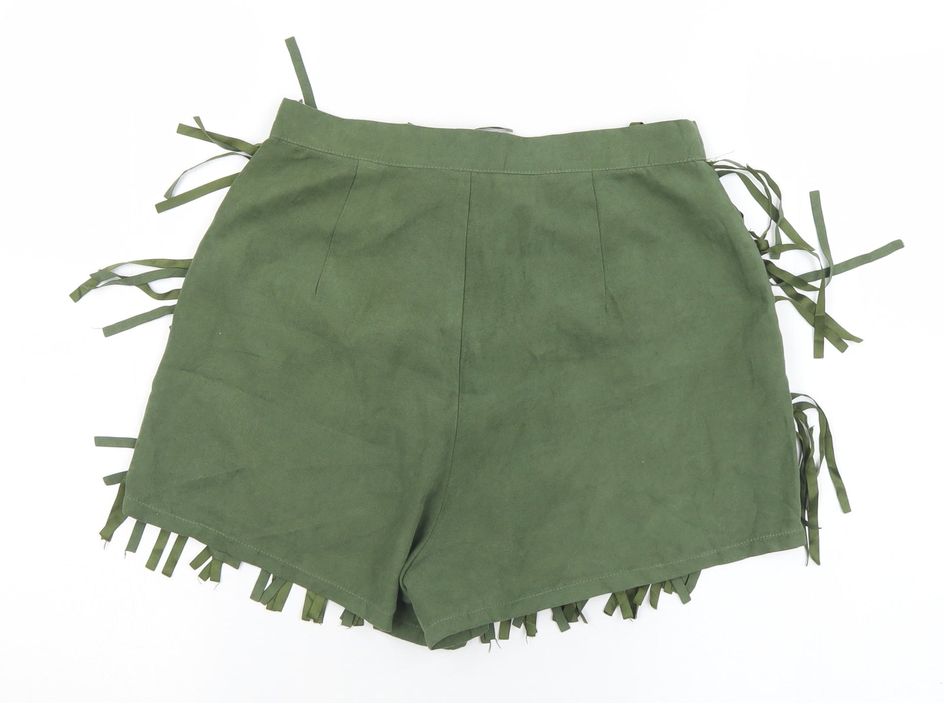 Boohoo Womens Green Polyester Hot Pants Shorts Size 8 L3 in Regular Zip