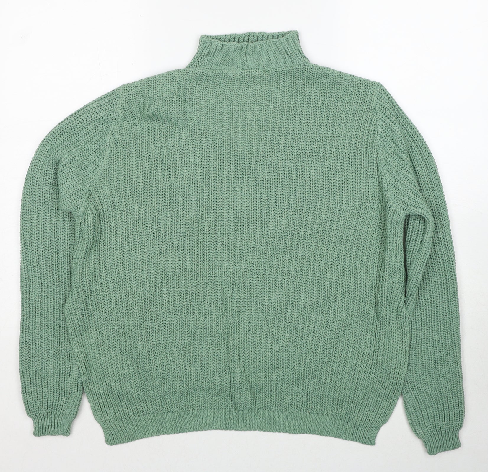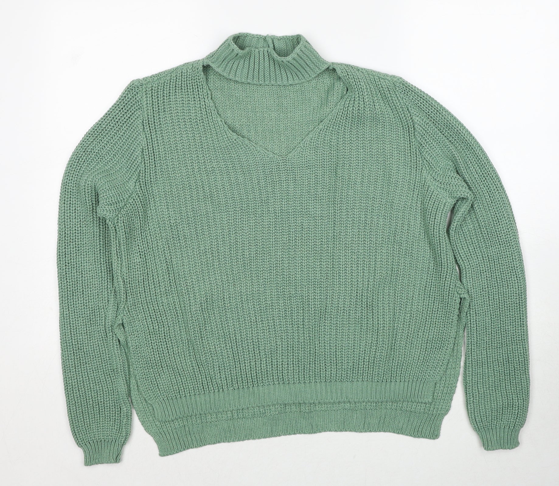 Boohoo Womens Green V-Neck Acrylic Pullover Jumper Size S