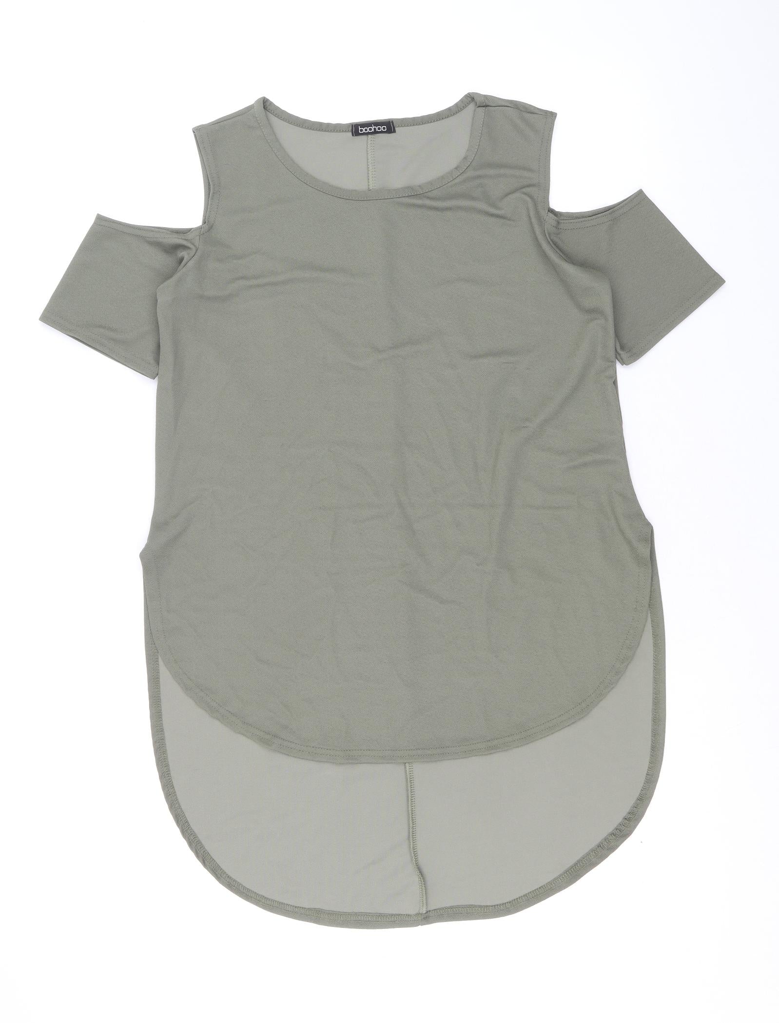 Boohoo Womens Green Viscose Basic Blouse Size S Scoop Neck - Cold Shoulder