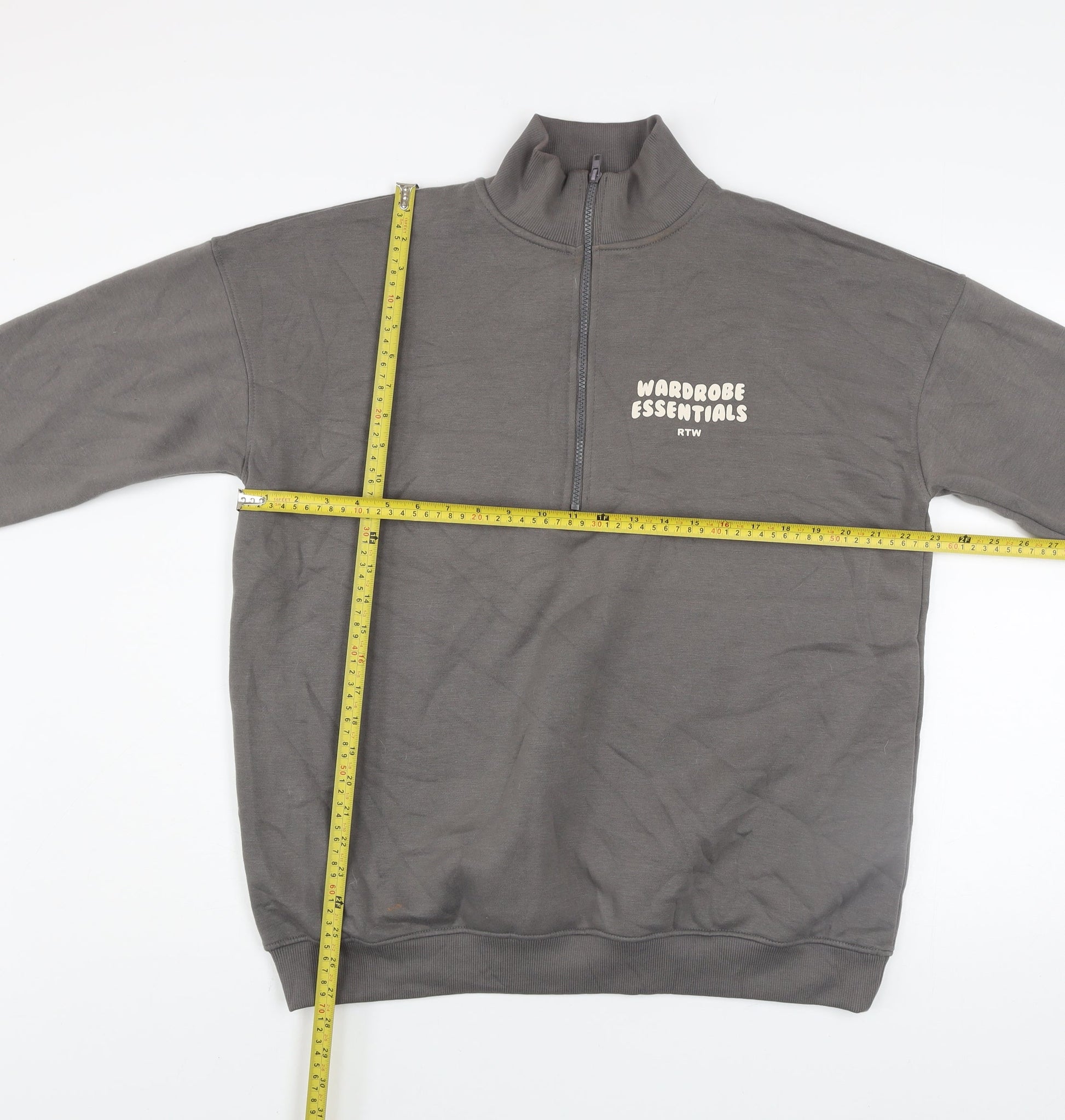 Boohoo Womens Grey 1/4 Zip Pullover Sweatshirt XS Relaxed Fit