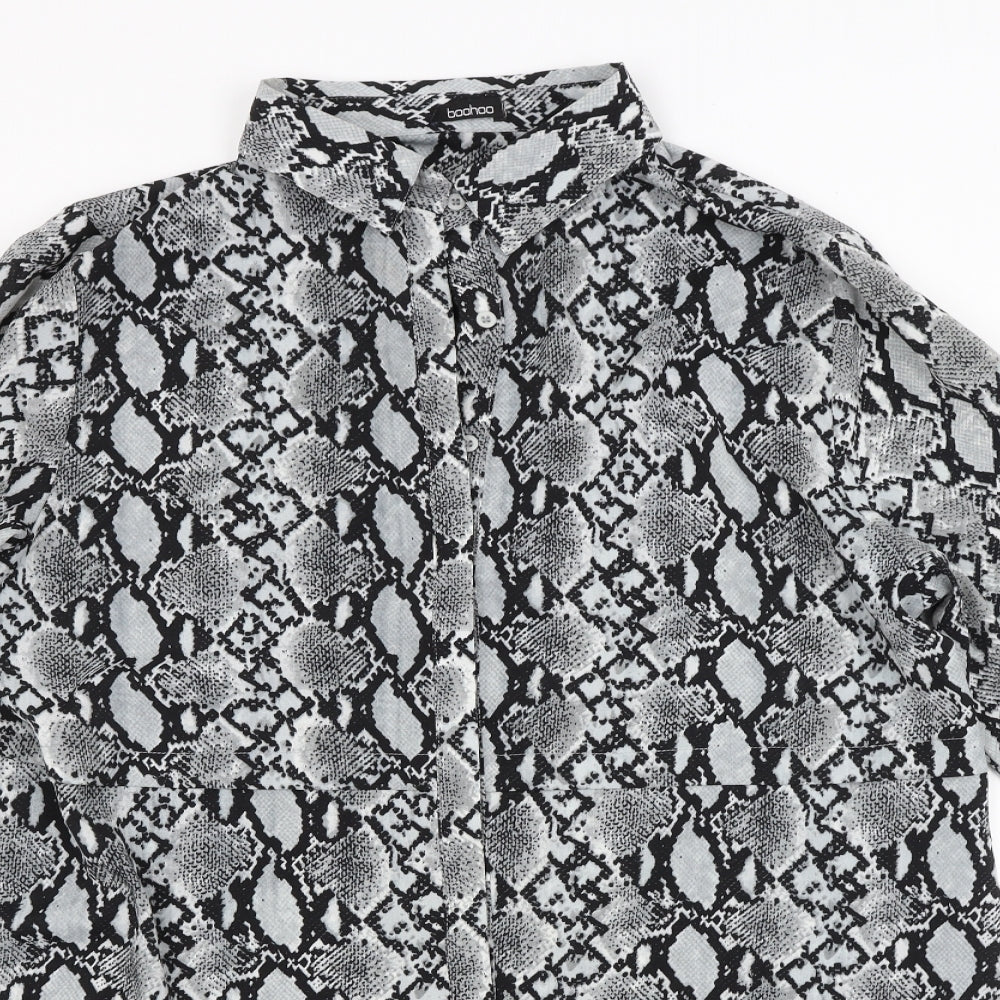 Boohoo Womens Grey Animal Print Basic Button-Up