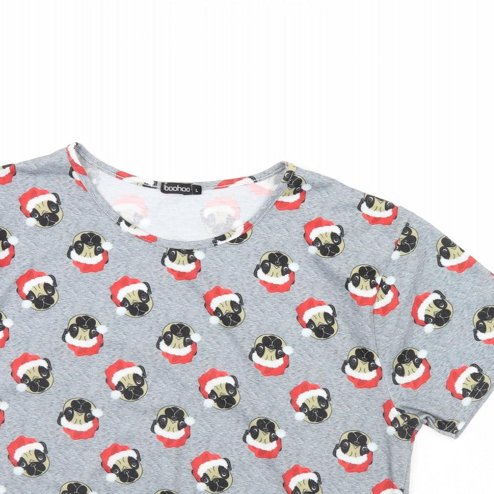 Boohoo Womens Grey Animal Print Cropped T-Shirt Size L - pug