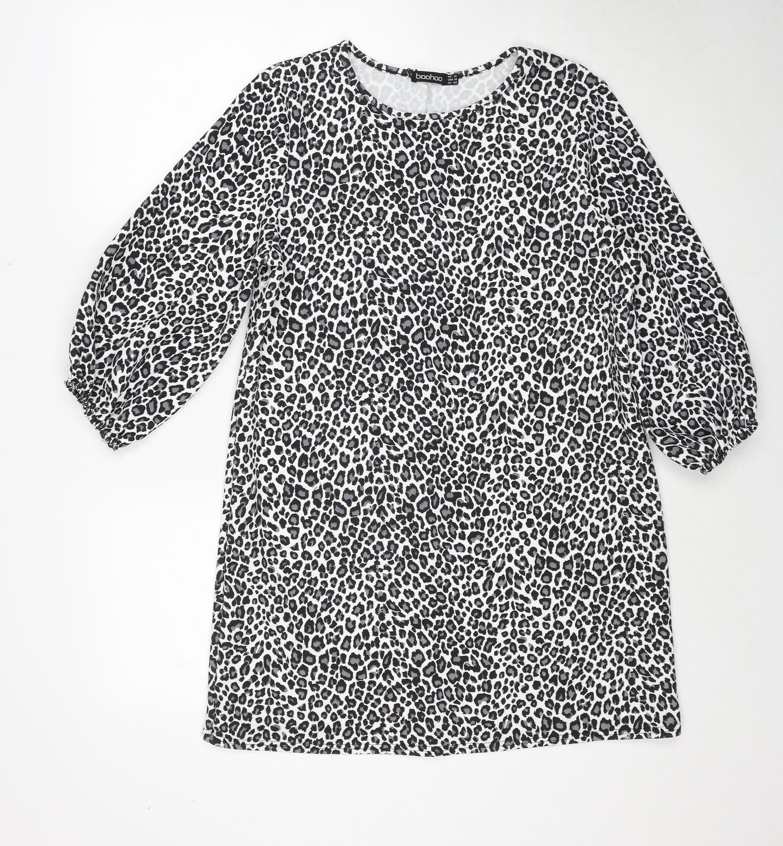 Boohoo Womens Grey Animal Print Polyester A-Line Size 14 Round Neck Pullover - Leopard Pattern