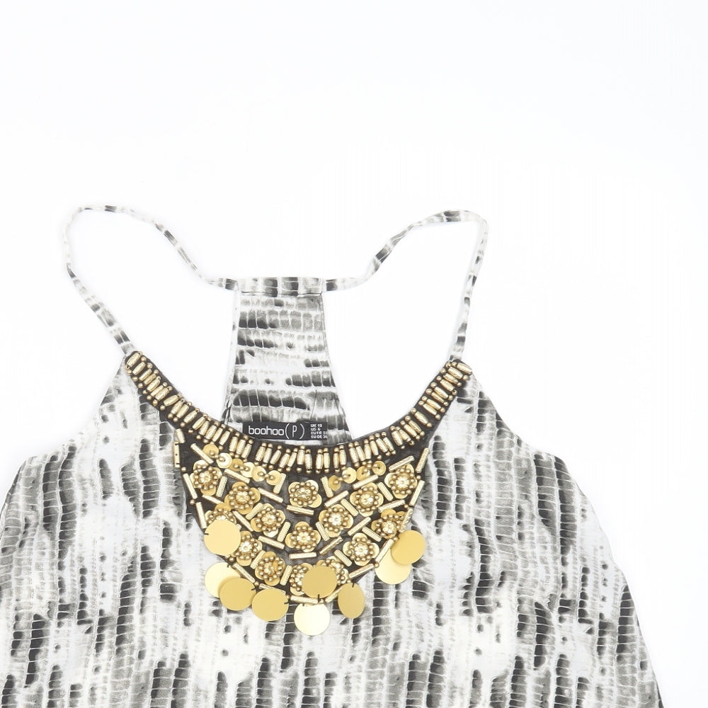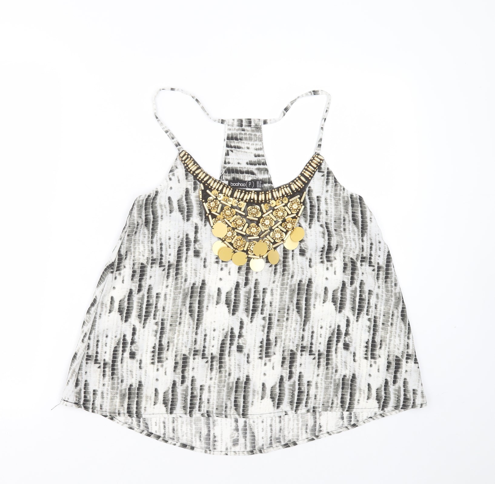 Boohoo Womens Grey Animal Print Polyester Basic Blouse Size 10 Round Neck - beaded
