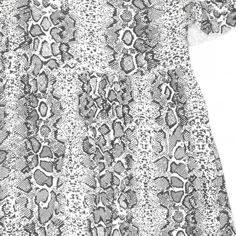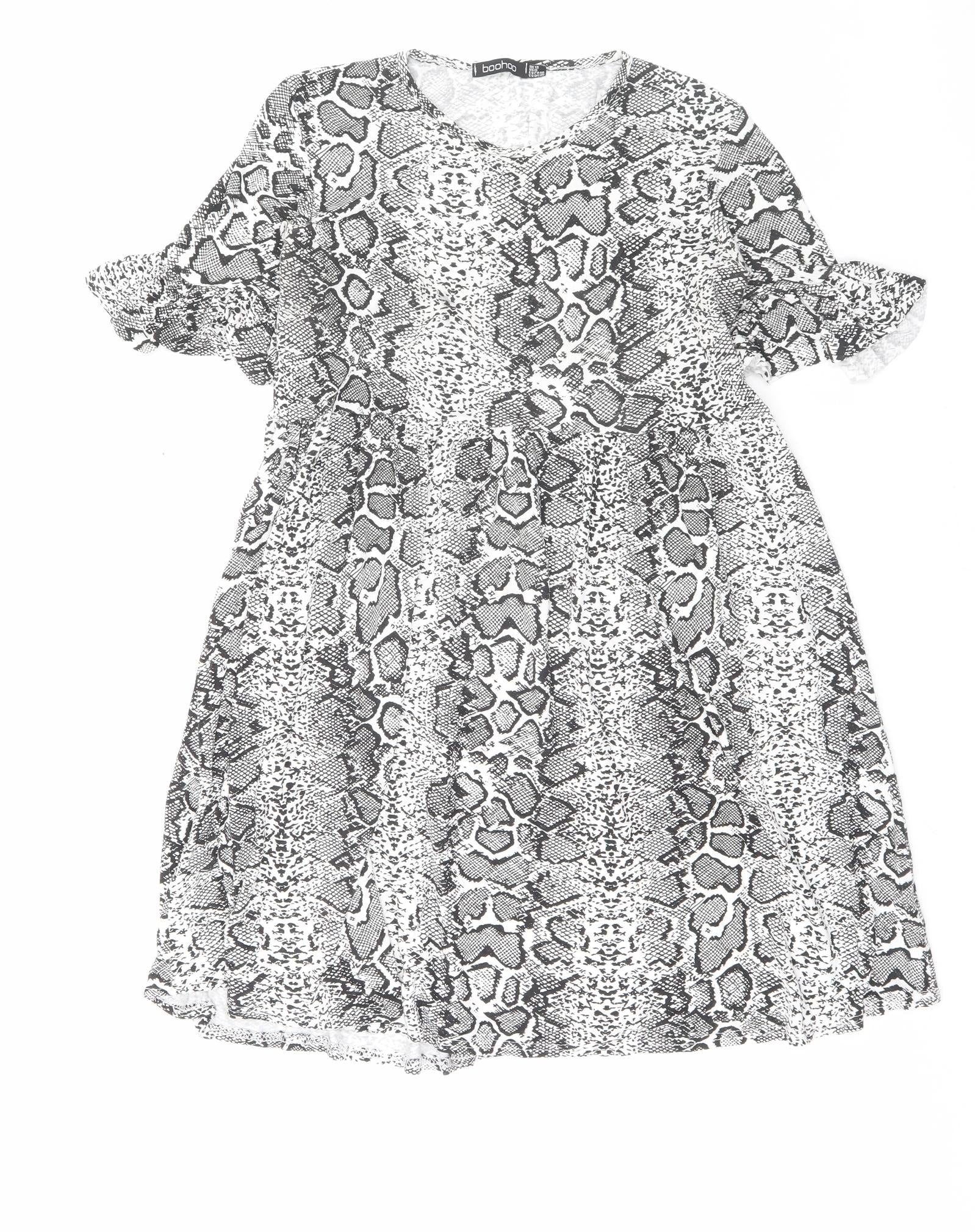 Boohoo Womens Grey Animal Print Viscose A-Line Size 12 Crew Neck Pullover - Snake Print