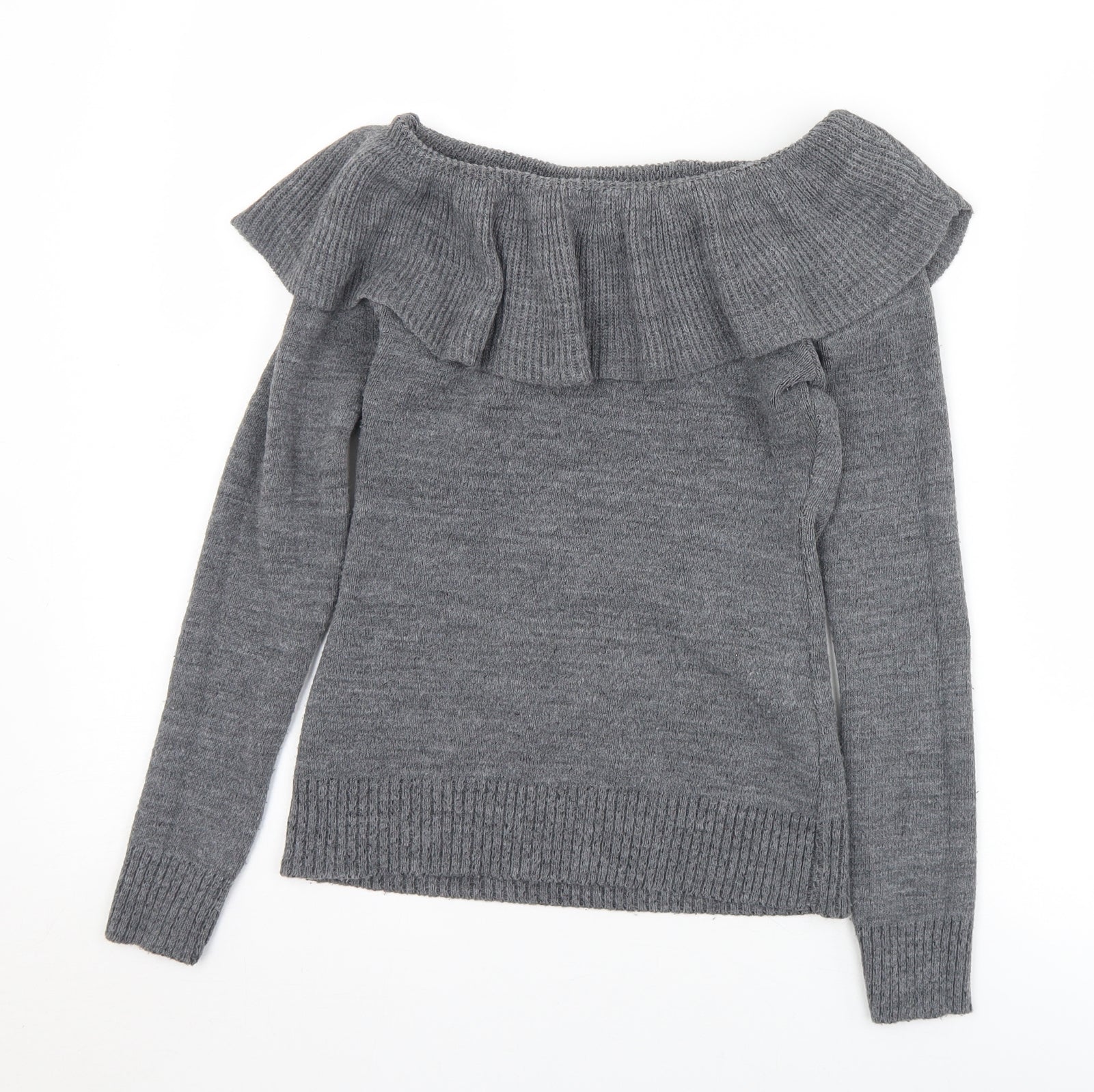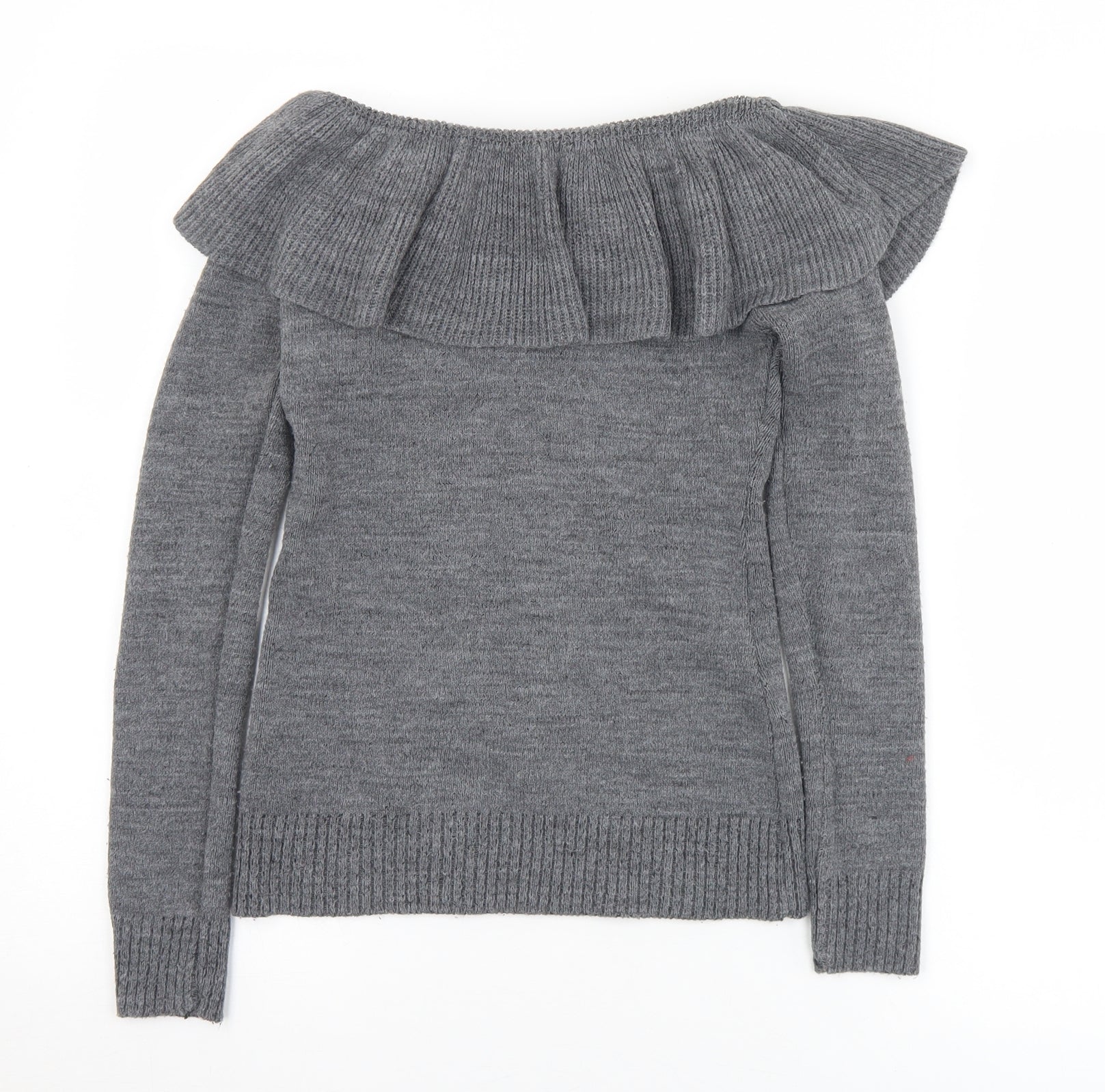 Boohoo Womens Grey Collared Acrylic Pullover Jumper Size 8