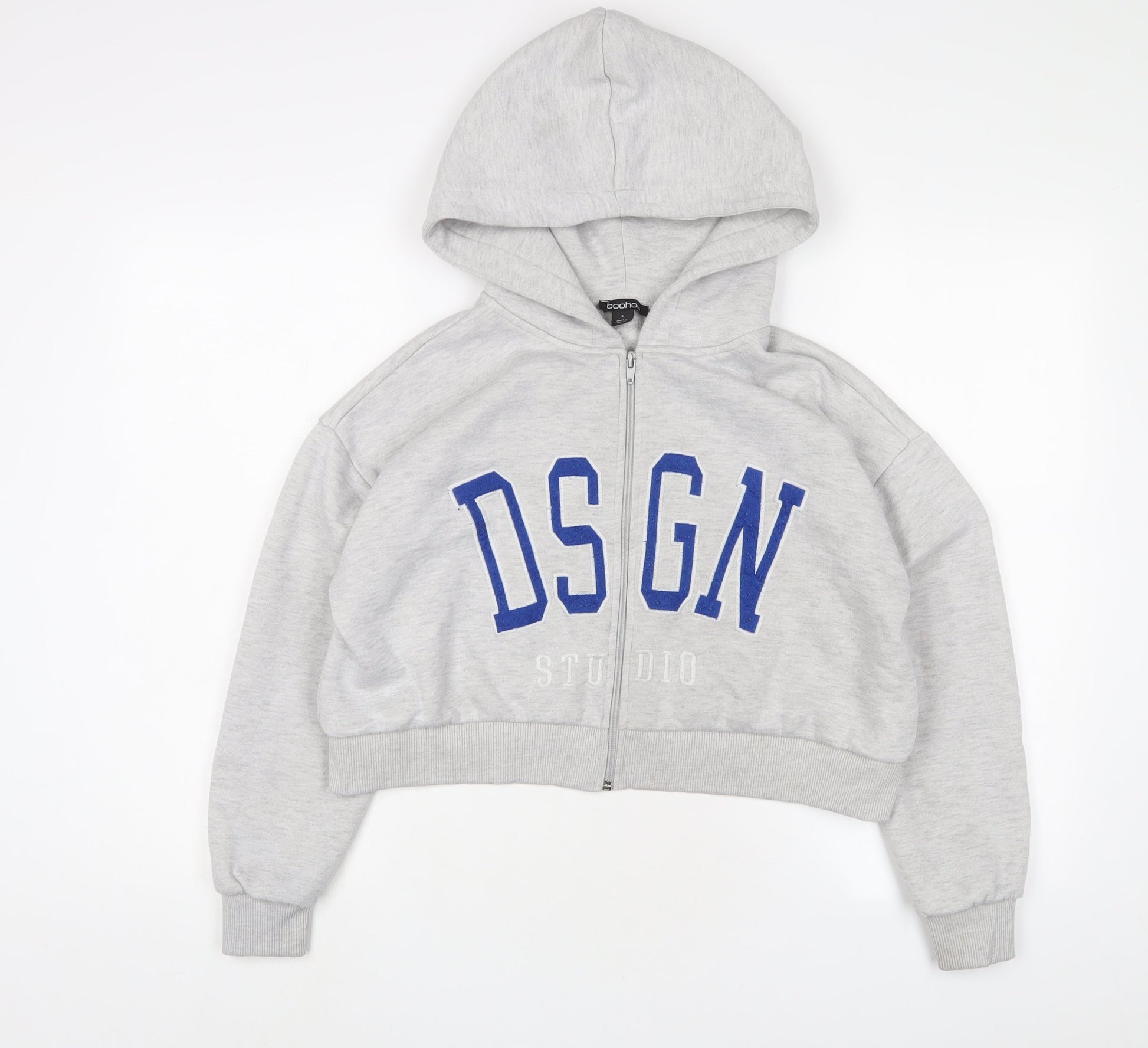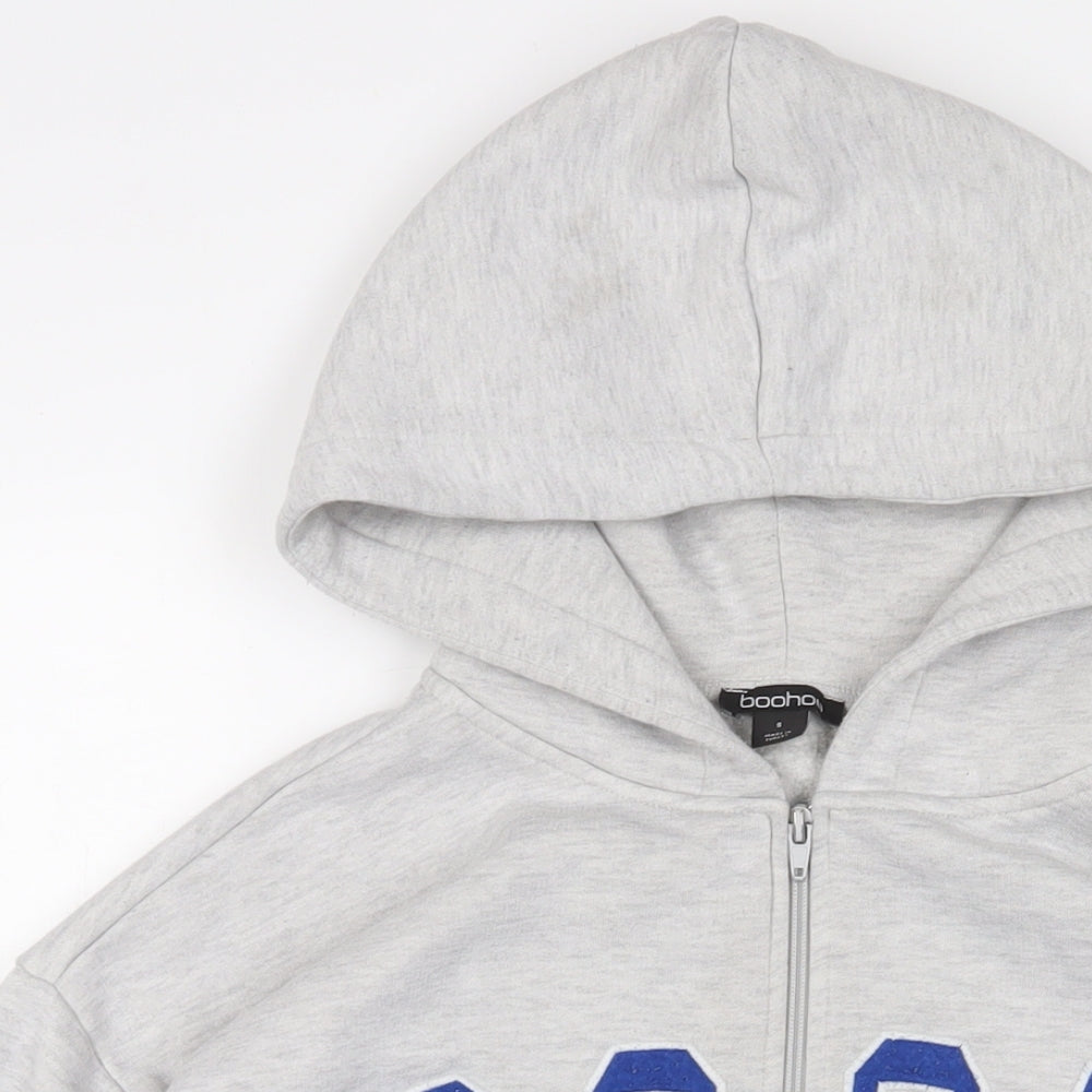Boohoo Womens Grey Cotton Full Zip Hoodie Size S Zip - Embroidered