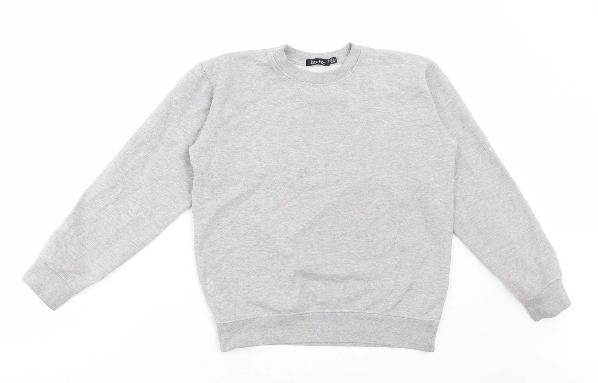 Boohoo Womens Grey Cotton Pullover Sweatshirt Size 8 Pullover