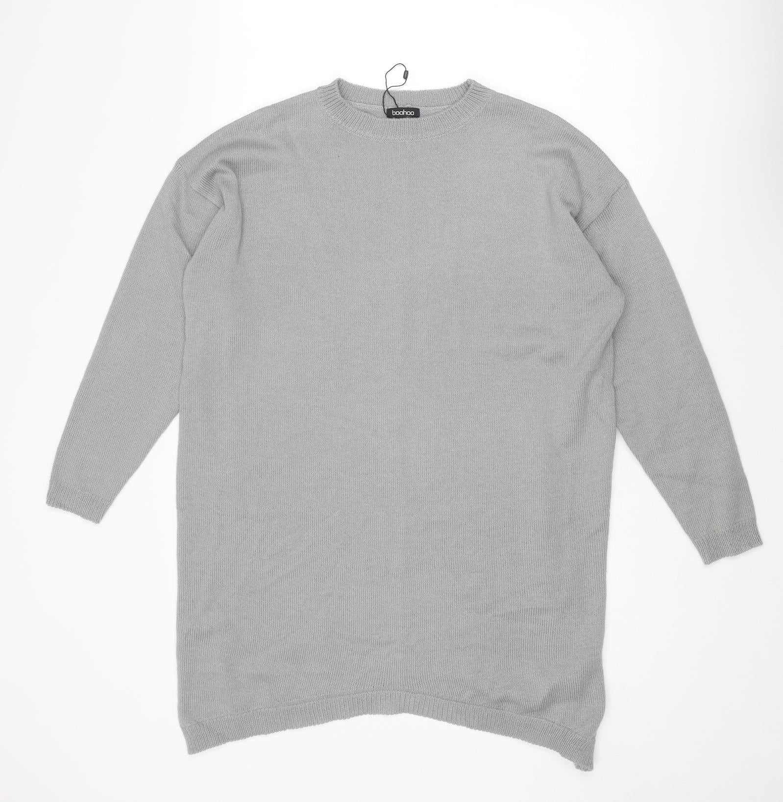 Boohoo Womens Grey Crew Neck Acrylic Pullover Jumper Size S