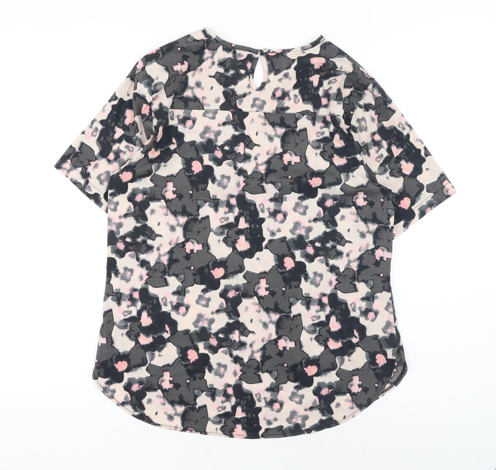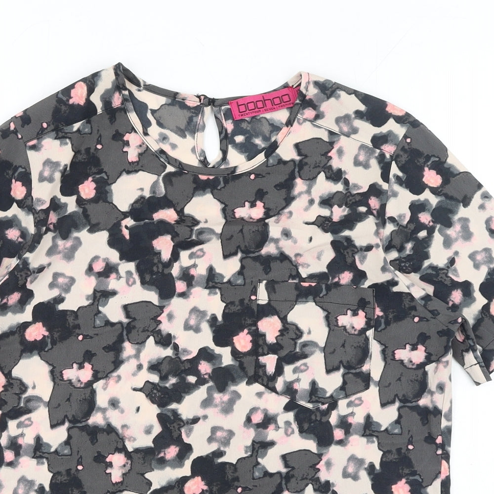 Boohoo Womens Grey Geometric Polyester Basic T-Shirt Size 10 Scoop Neck
