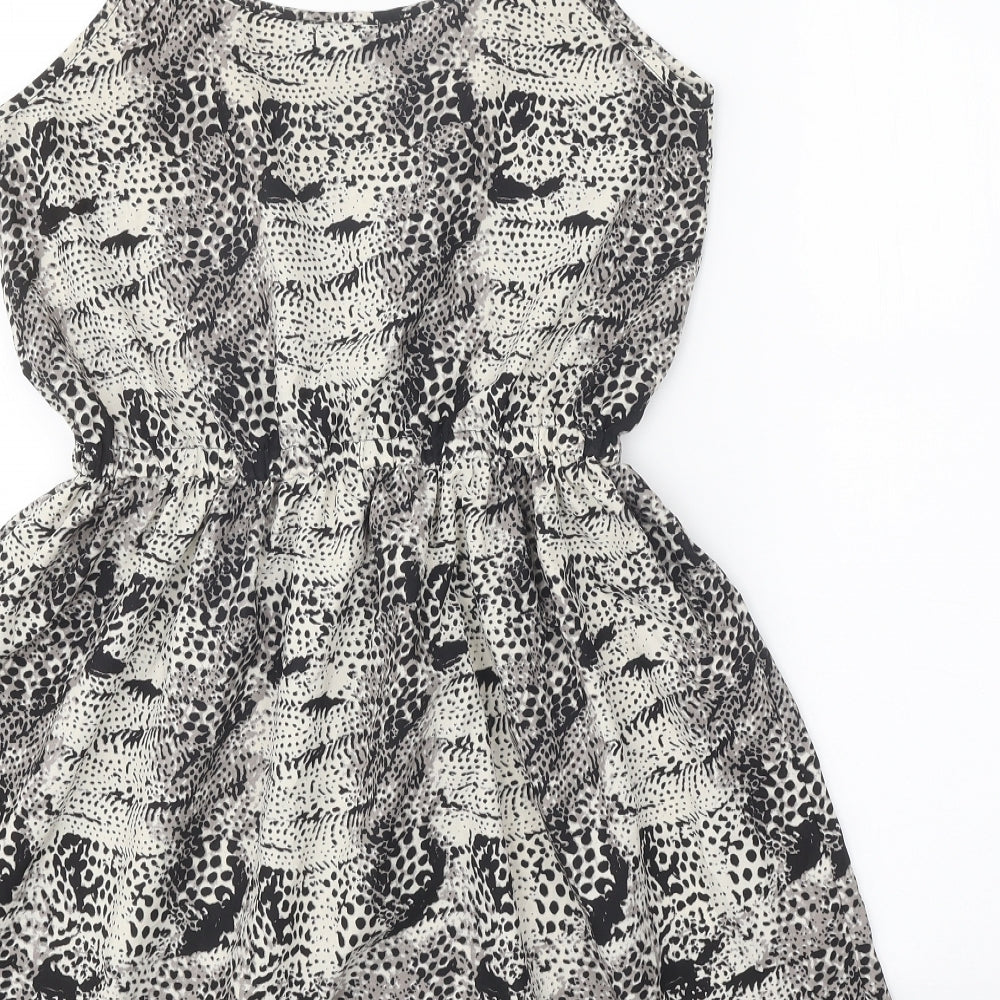 Boohoo Womens Grey Geometric Polyester Skater Dress Size 10 Scoop Neck Pullover