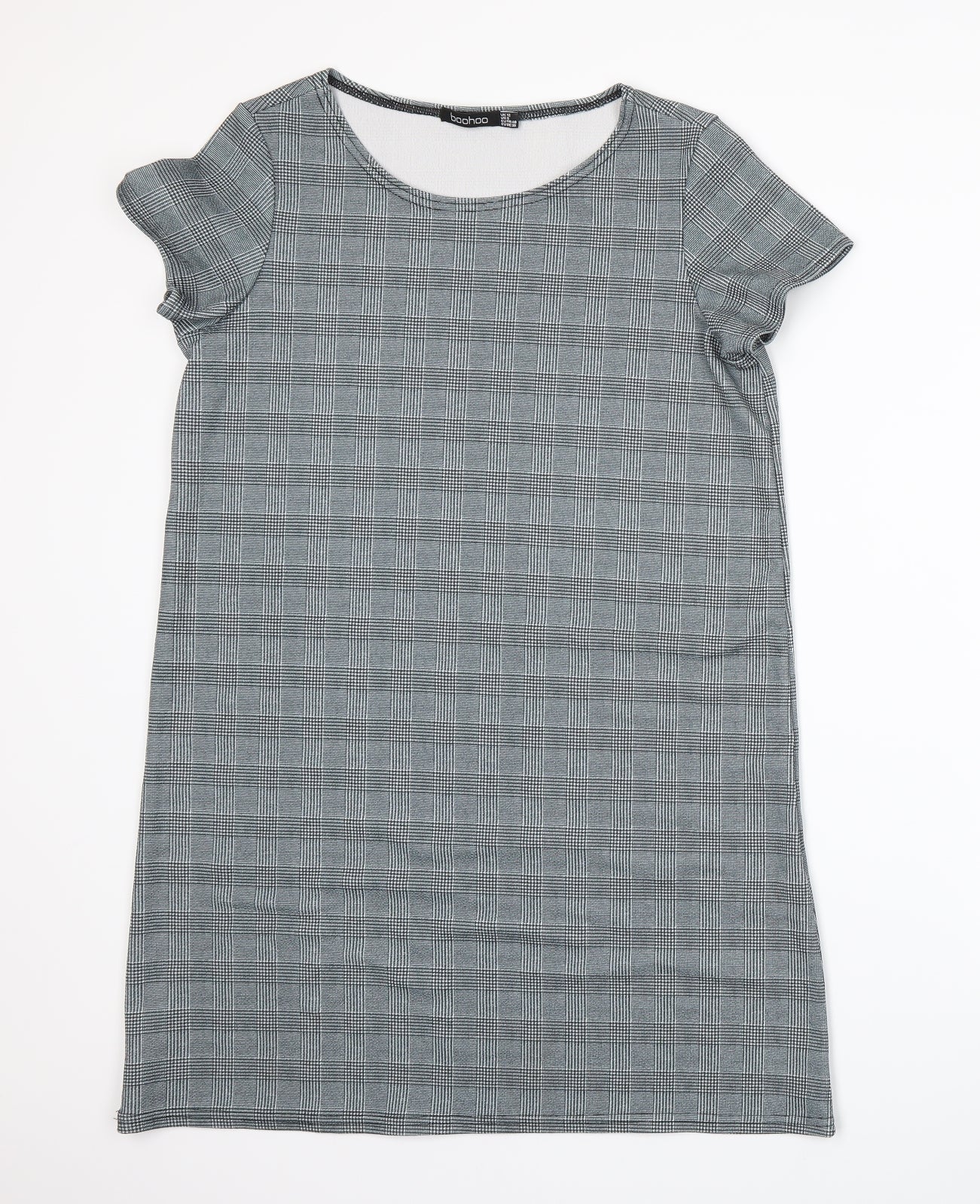 Boohoo Womens Grey Houndstooth A-Line Size 12