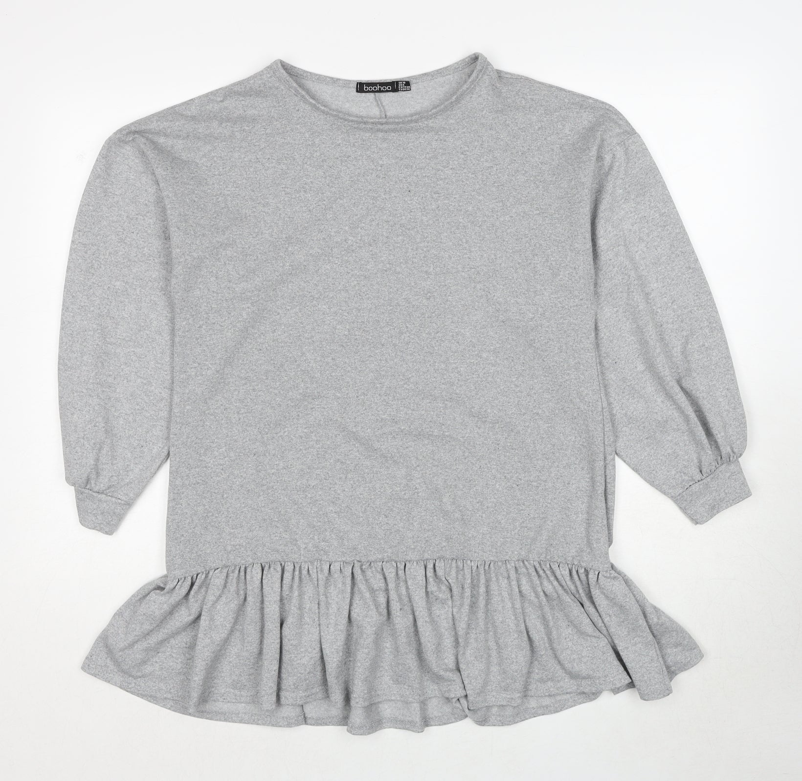 Boohoo Womens Grey Polyester Basic Blouse Size 10 Round Neck