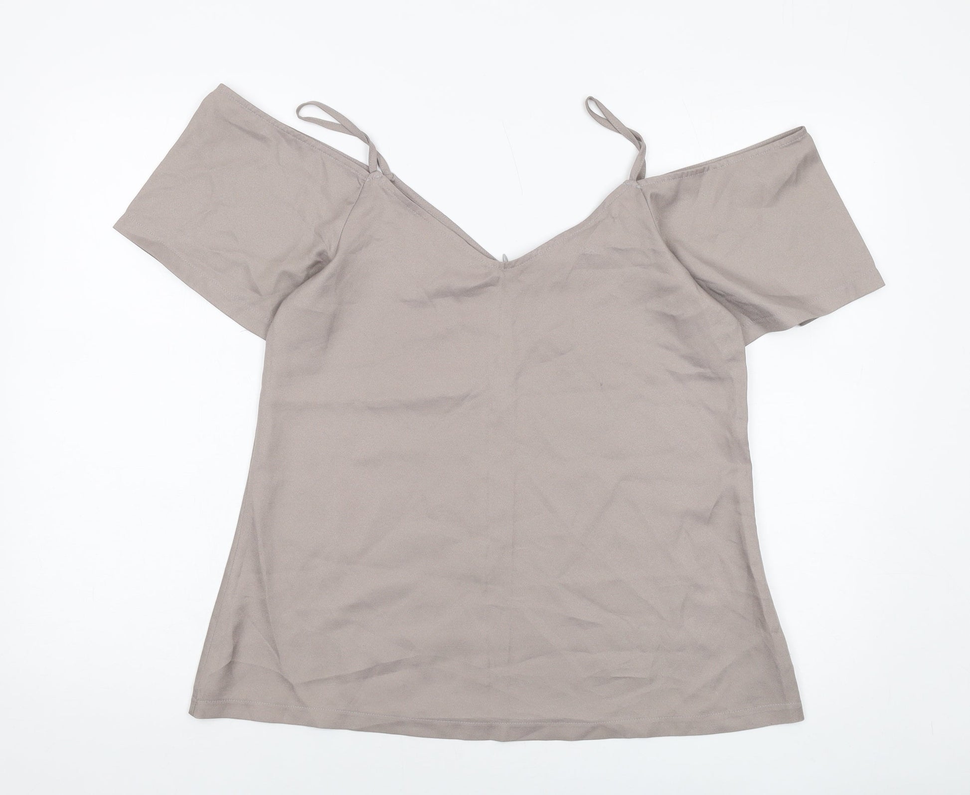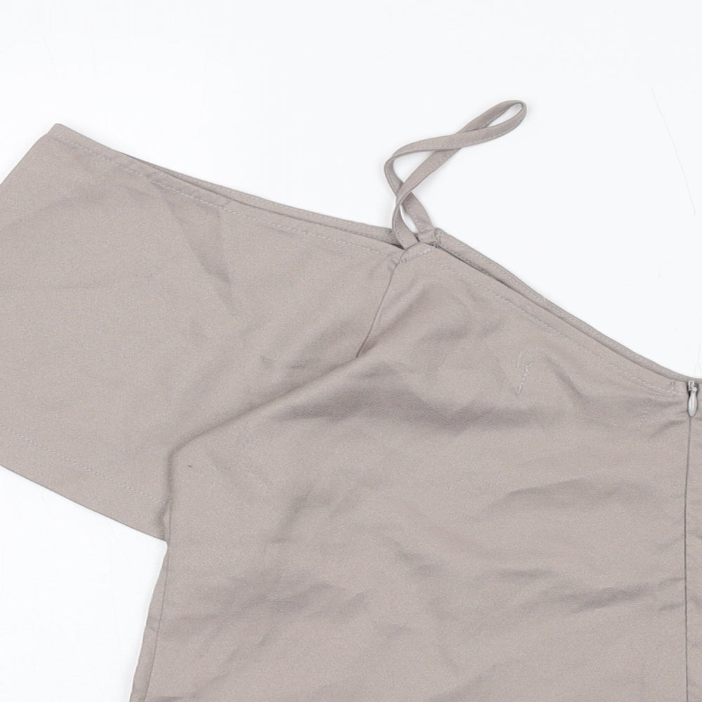 Boohoo Womens Grey Polyester Basic Blouse Size 12 V-Neck
