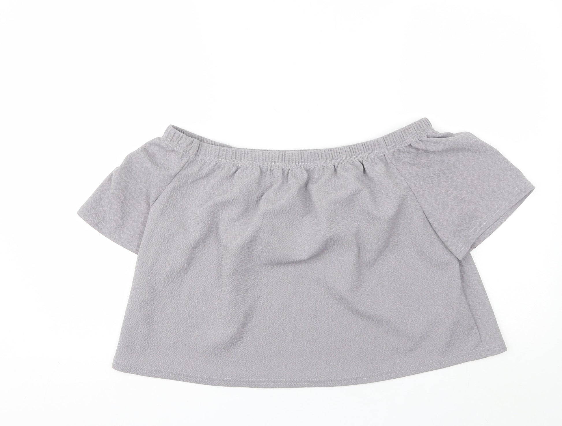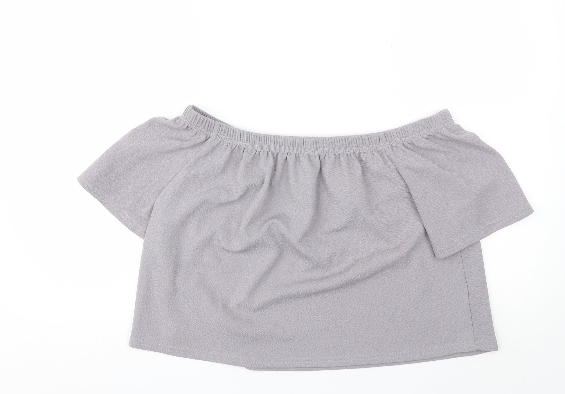 Boohoo Womens Grey Polyester Basic Blouse Size 16 Off the Shoulder