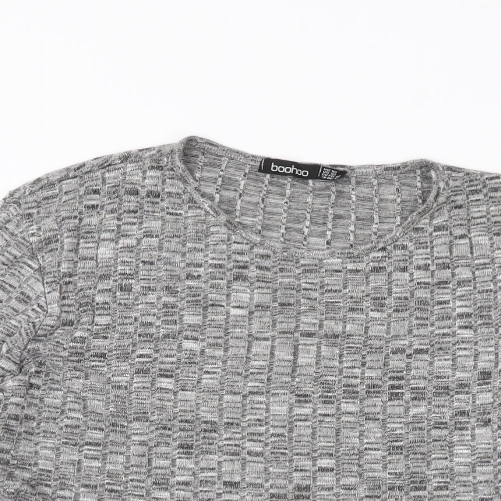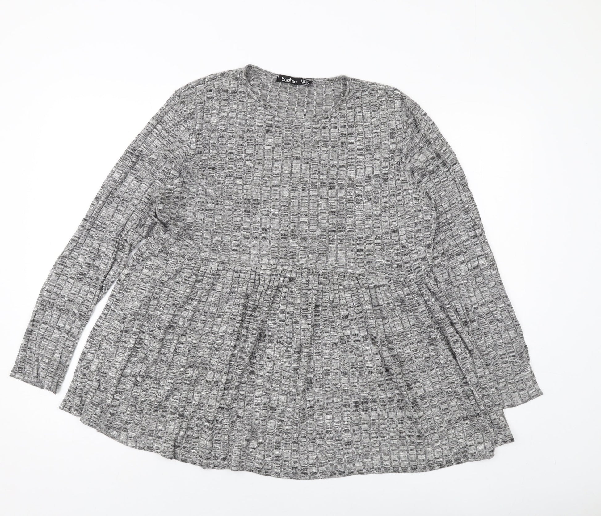 Boohoo Womens Grey Polyester Basic Blouse Size 16 Round Neck
