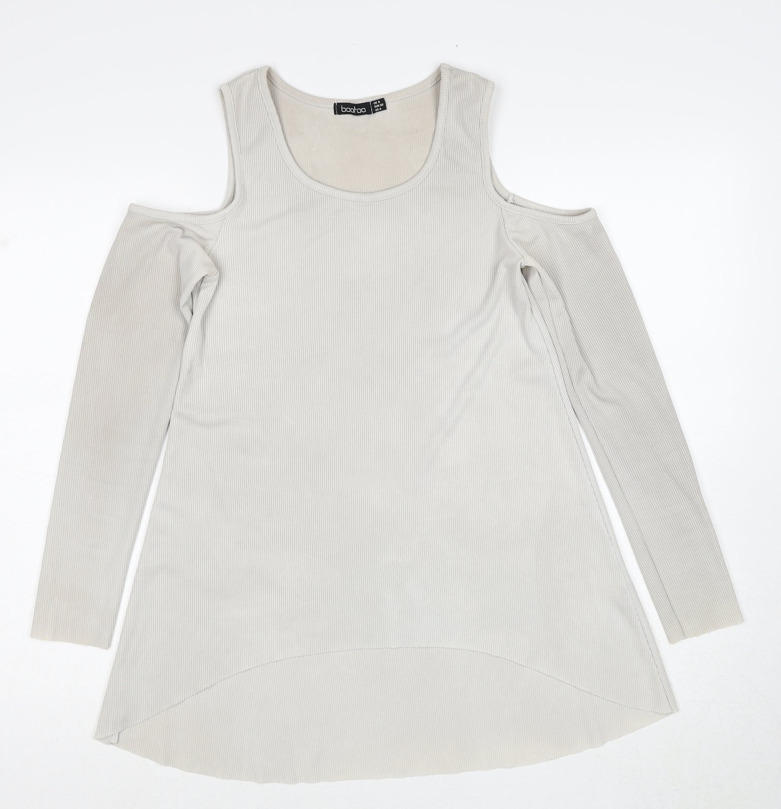 Boohoo Womens Grey Polyester Basic Blouse Size 8 Round Neck - Cold Shoulder