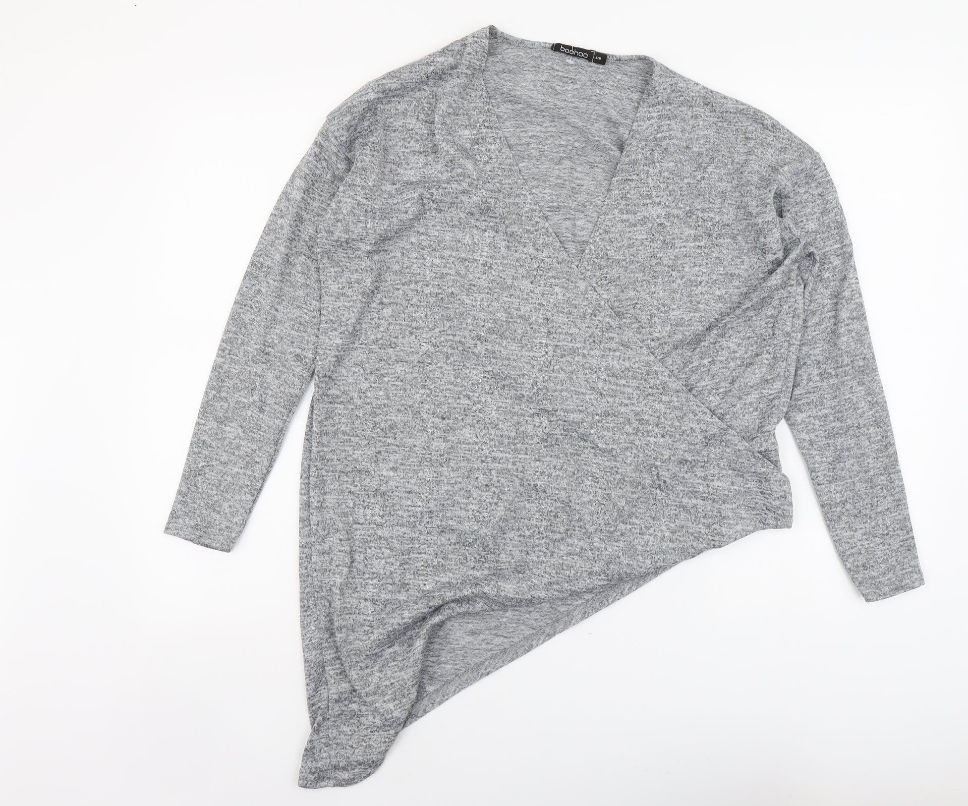 Boohoo Womens Grey Polyester Basic Blouse Size S V-Neck