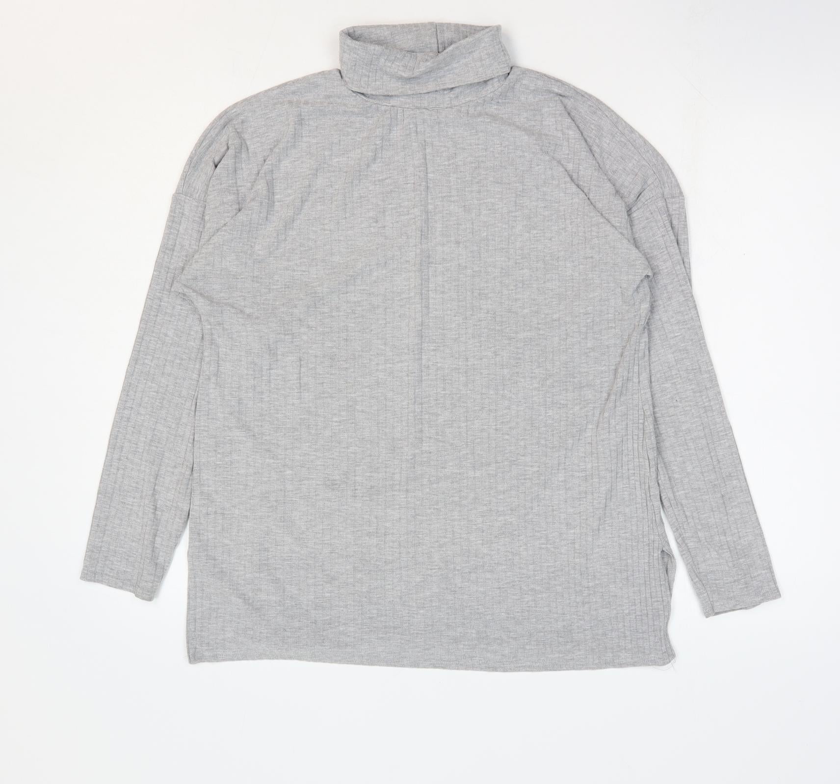 Boohoo Womens Grey Polyester Basic T-Shirt Size 12 Roll Neck - Ribbed