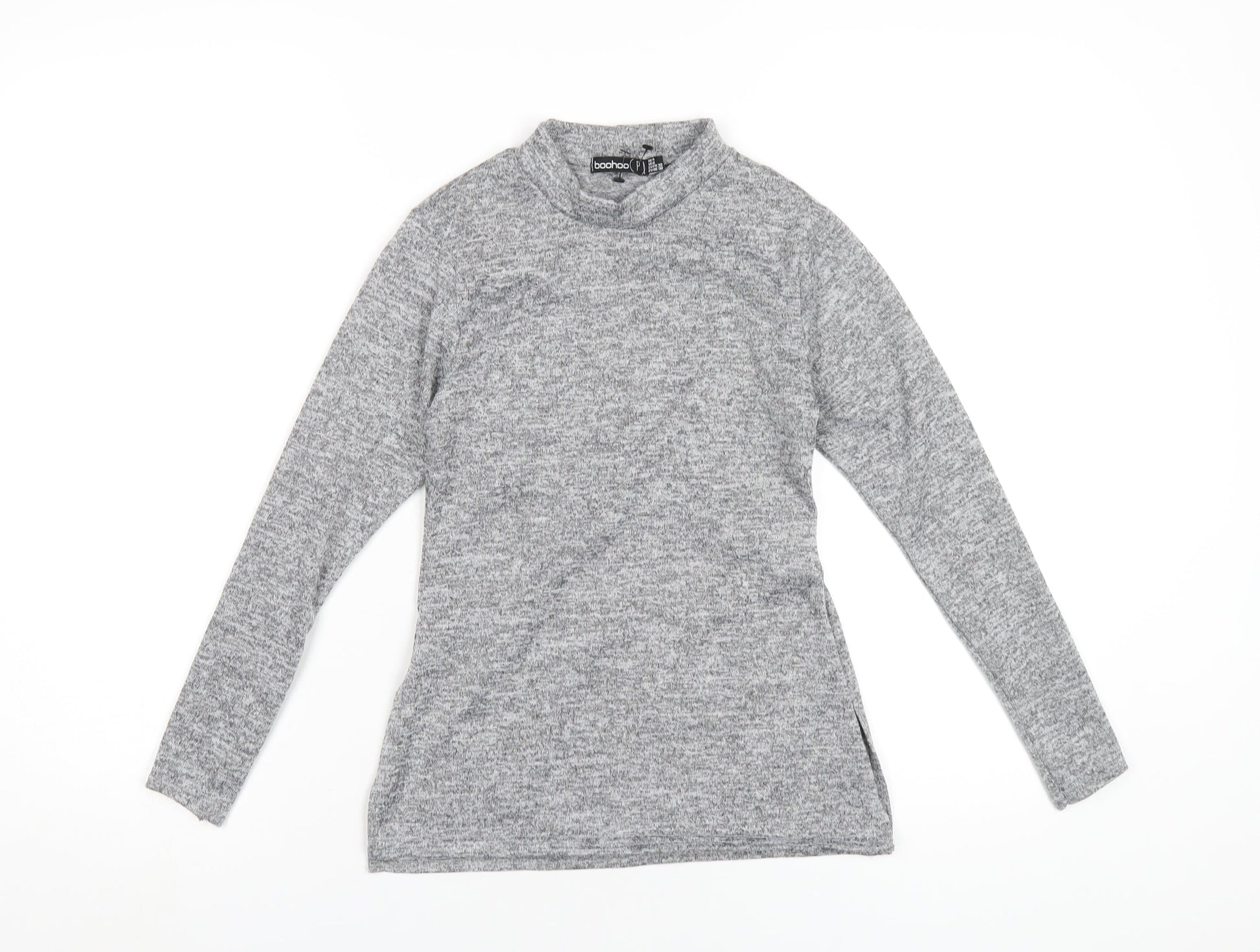 Boohoo Womens Grey Polyester Basic T-Shirt Size 4 Mock Neck
