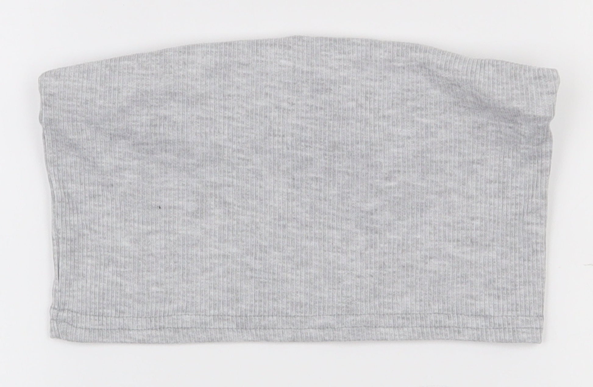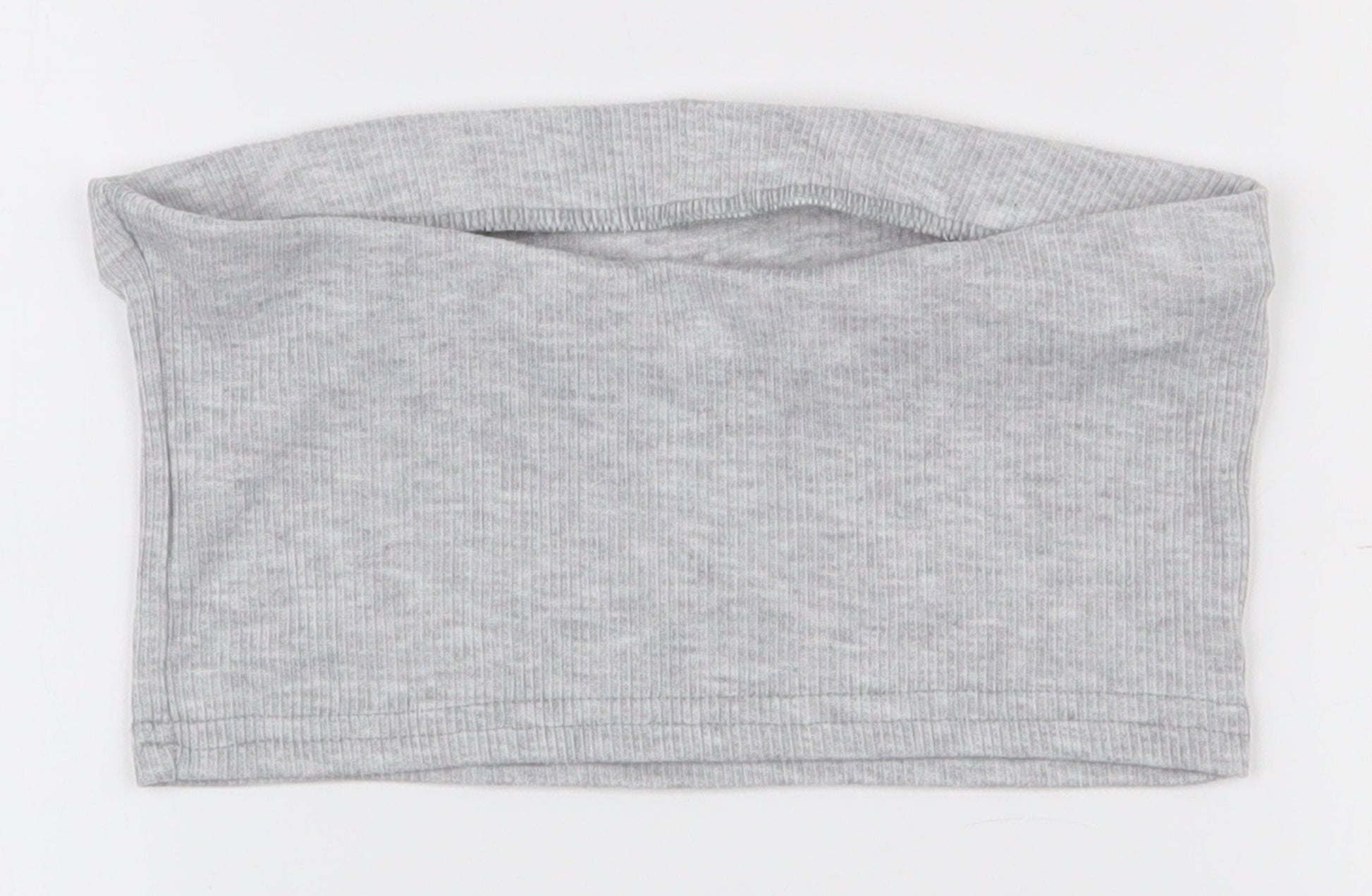 Boohoo Womens Grey Polyester Basic T-Shirt Size 6 Off the Shoulder - Boob Tube
