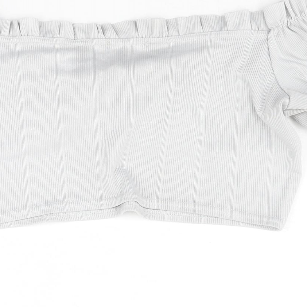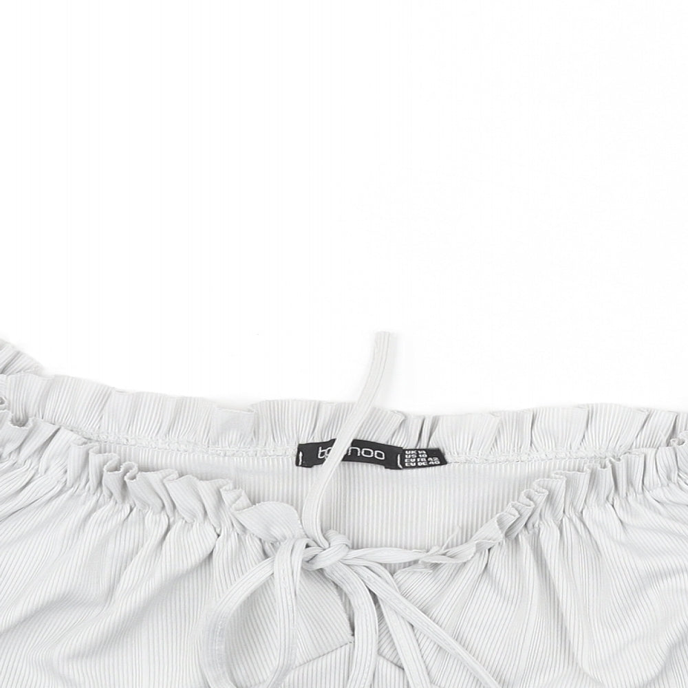 Boohoo Womens Grey Polyester Cropped Blouse Size 14 Boat Neck - Frill