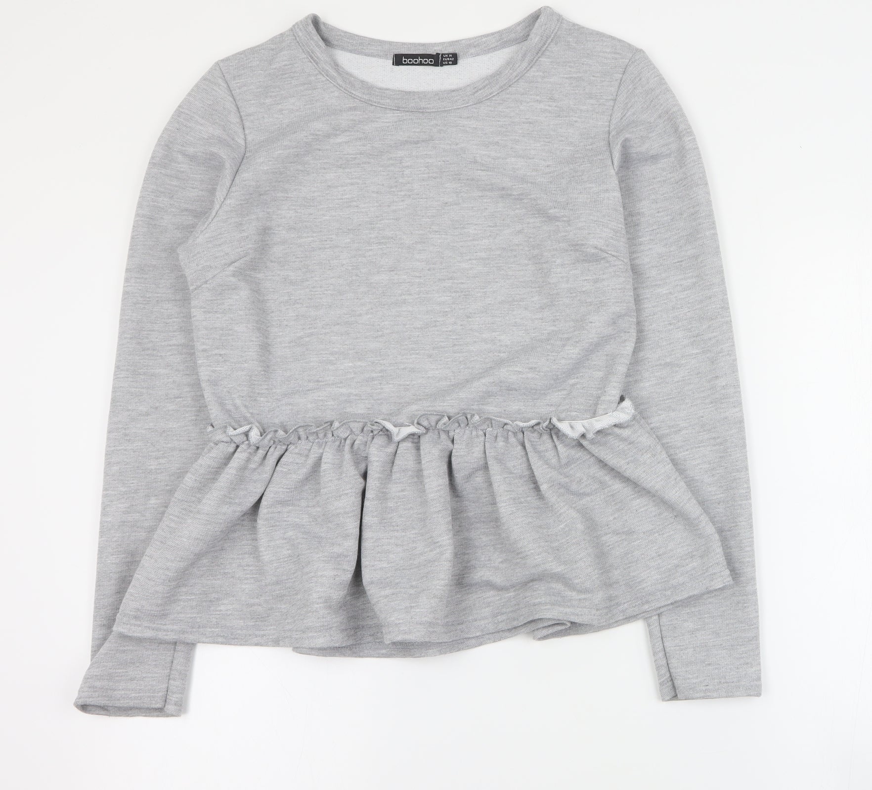 Boohoo Womens Grey Polyester Pullover Sweatshirt Size 14 Pullover