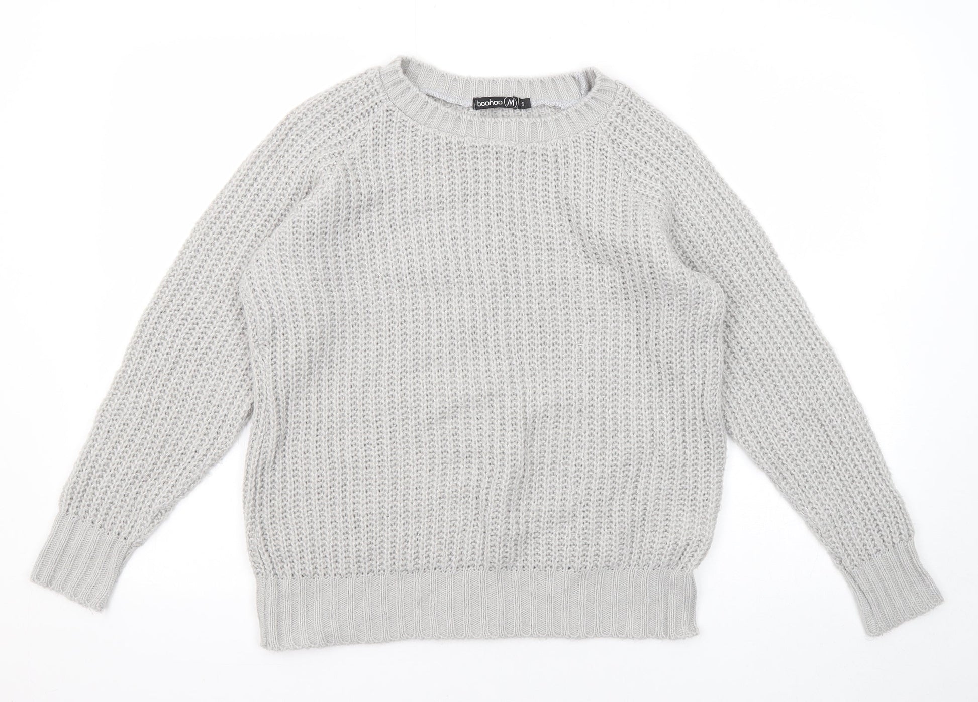 Boohoo Womens Grey Round Neck Acrylic Pullover Jumper Size S