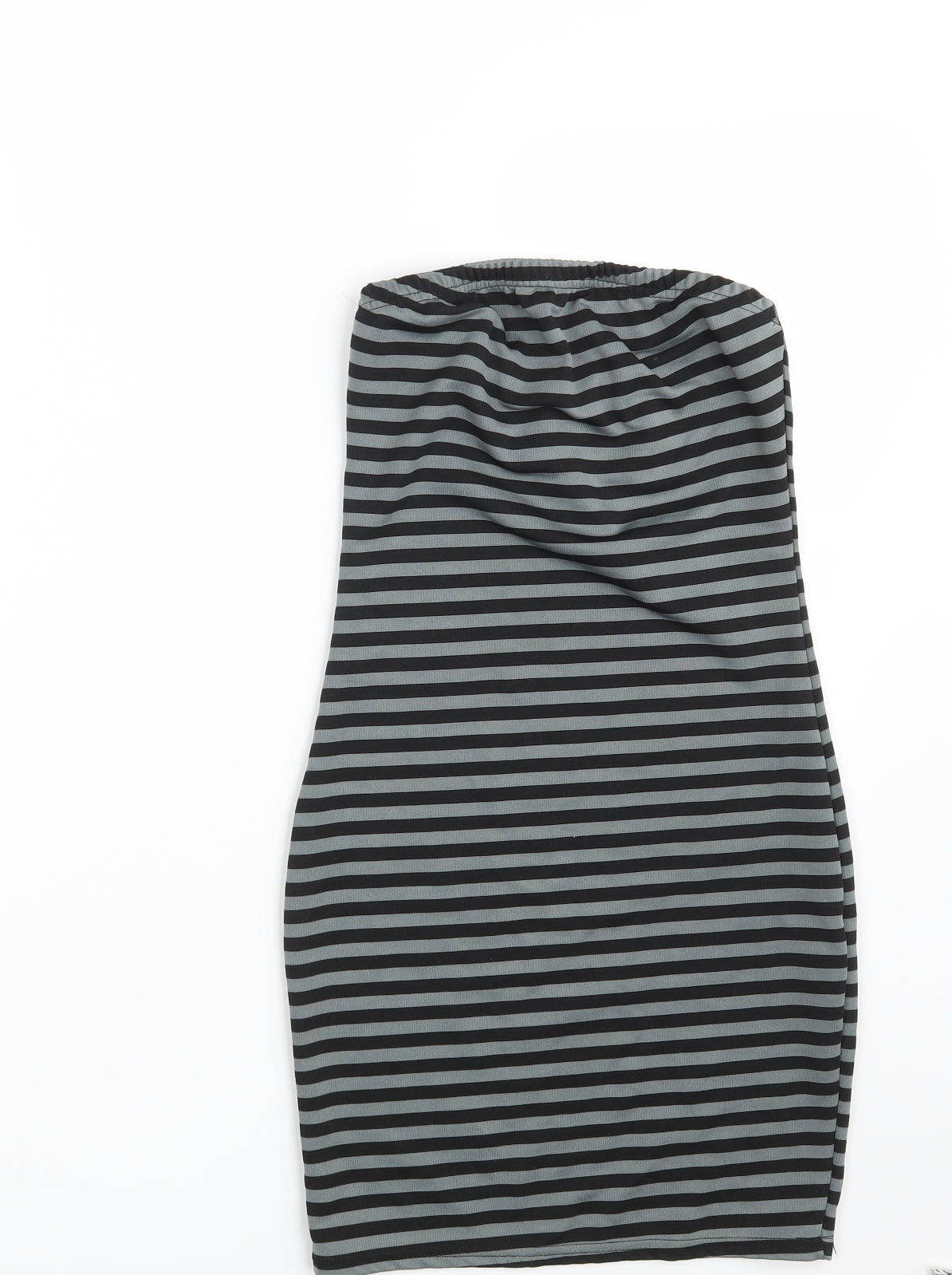 Boohoo Womens Grey Striped Fit & Flare Size 8