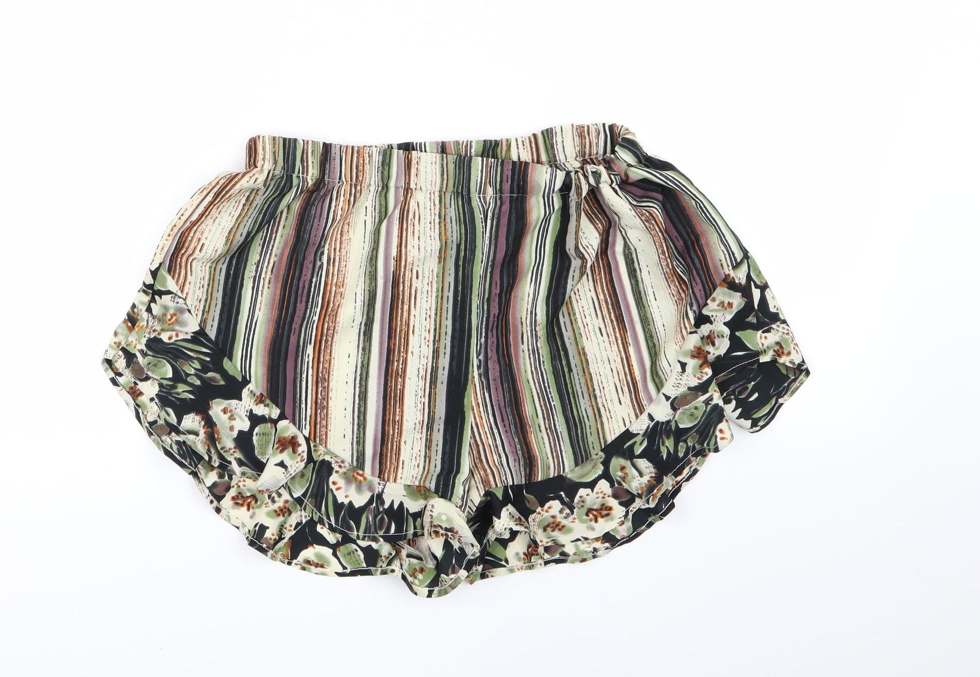 Boohoo Womens Grey Striped Paperbag Shorts Size 10