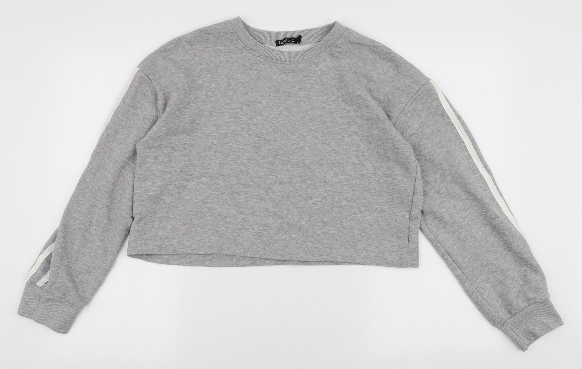 Boohoo Womens Grey Striped Polyester Pullover Sweatshirt Size 12 Pullover