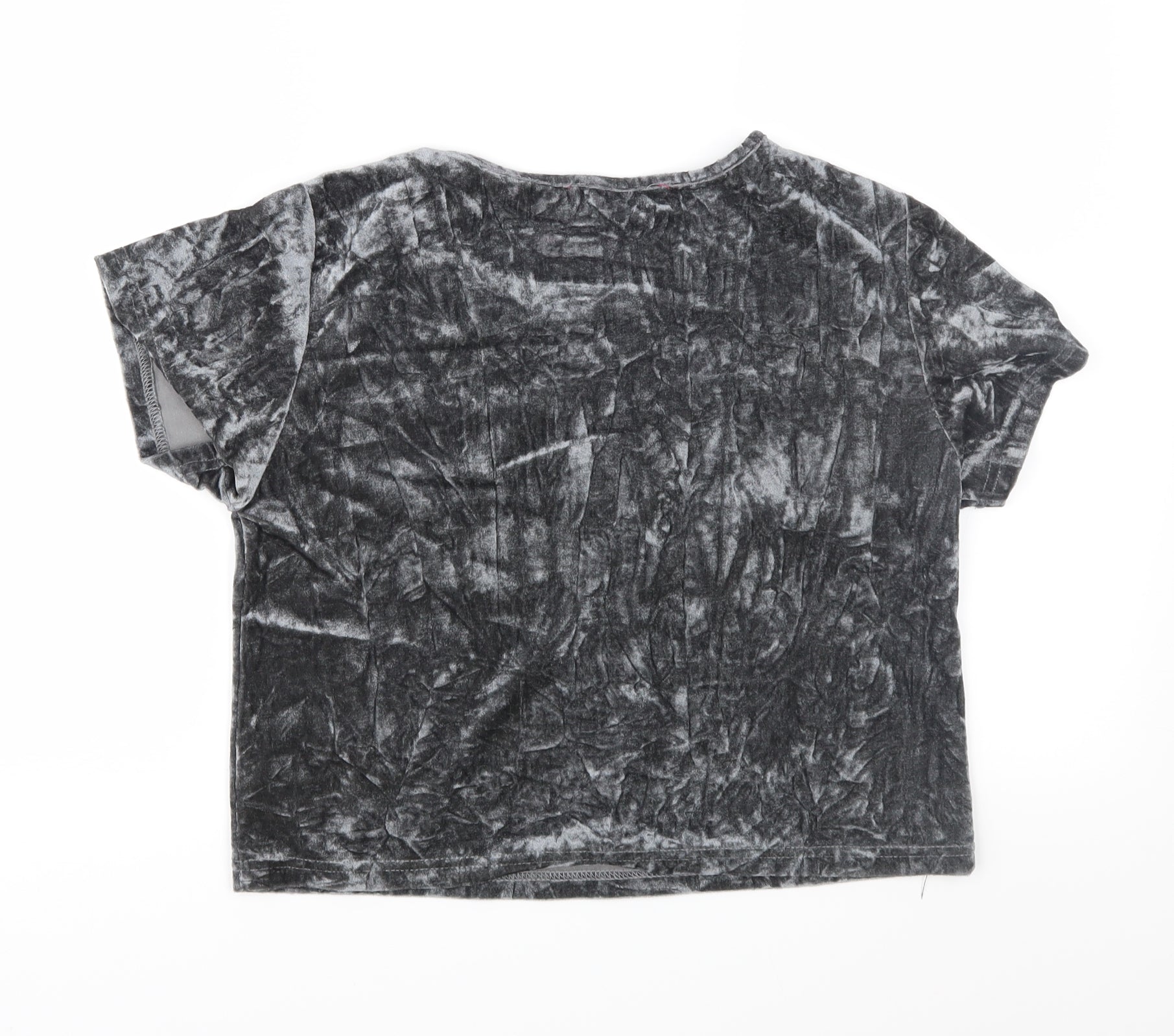 Boohoo Womens Grey Velour Basic T-Shirt Size 10